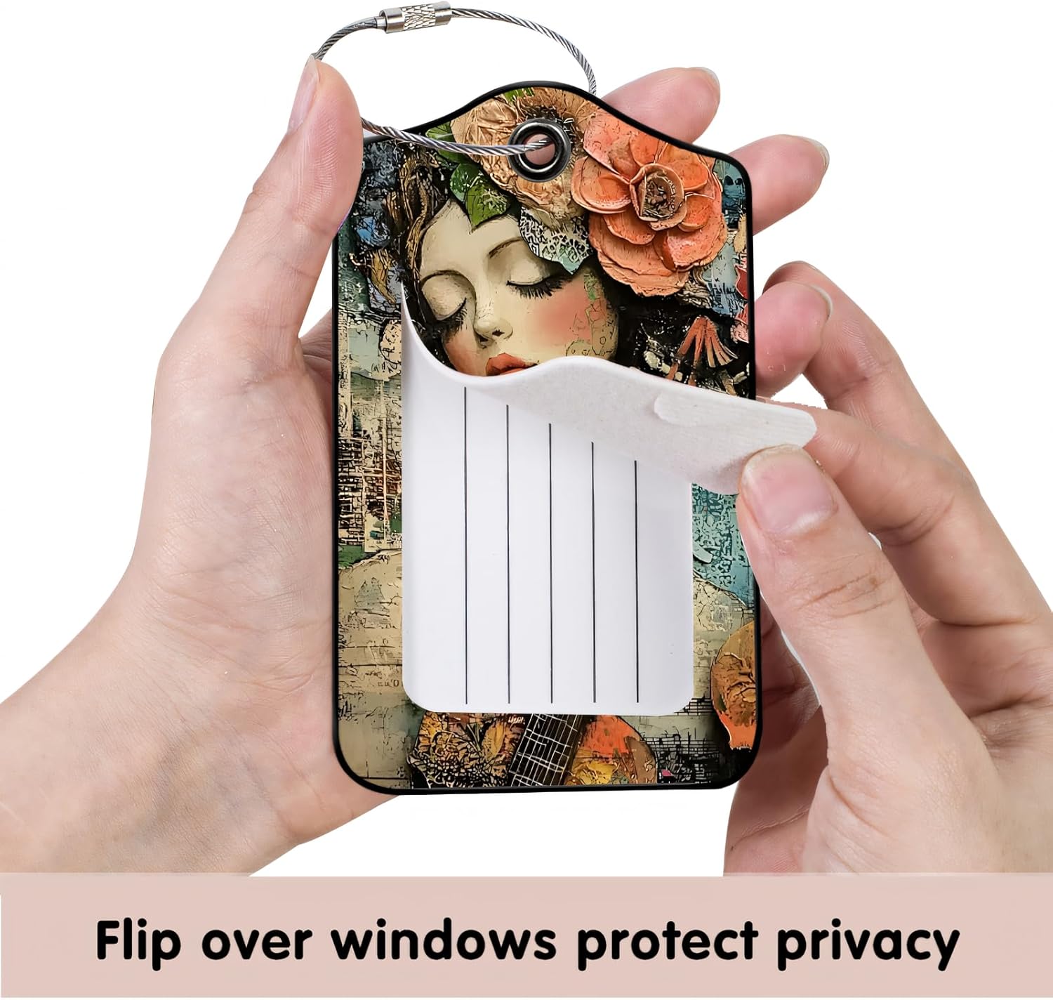 Luggage Tags for Suitcases, 2-Pack PU Leather for Cruise & Travel, Baggage ID Tags with Privacy Cover & Address Card, Durable Metal Ring, Kids Adults Travel Accessories, Floral Serenade