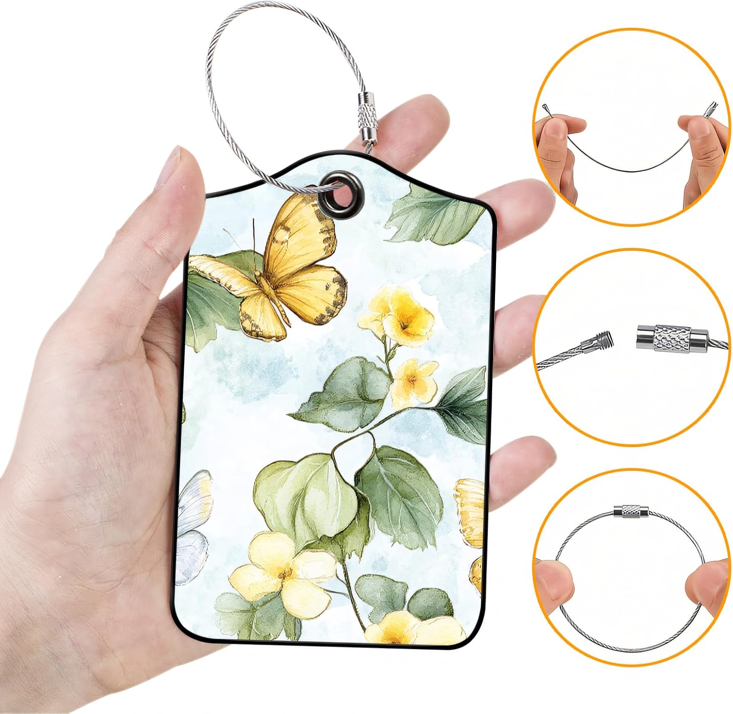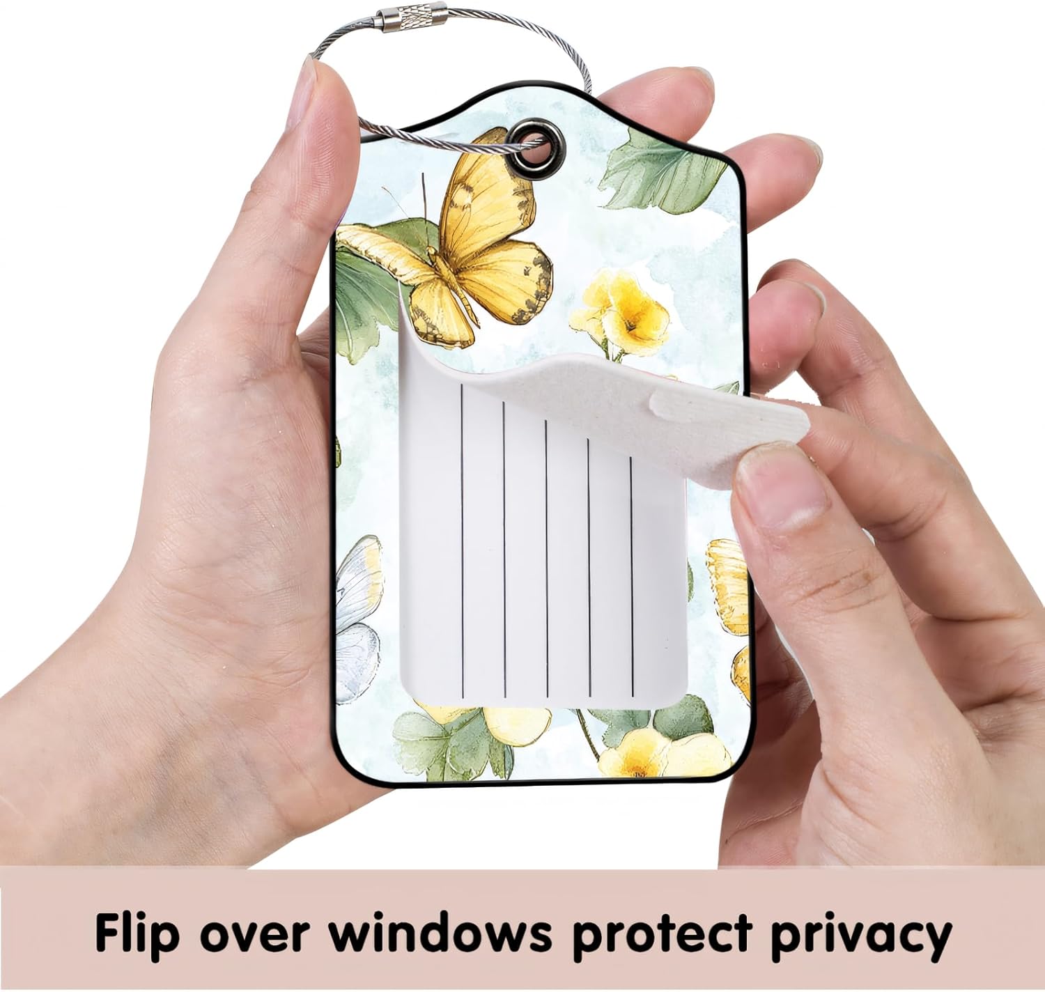Luggage Tags for Suitcases, 2-Pack PU Leather for Cruise & Travel, Baggage ID Tags with Privacy Cover & Address Card, Durable Metal Ring, Kids Adults Travel Accessories, Watercolor Flutter