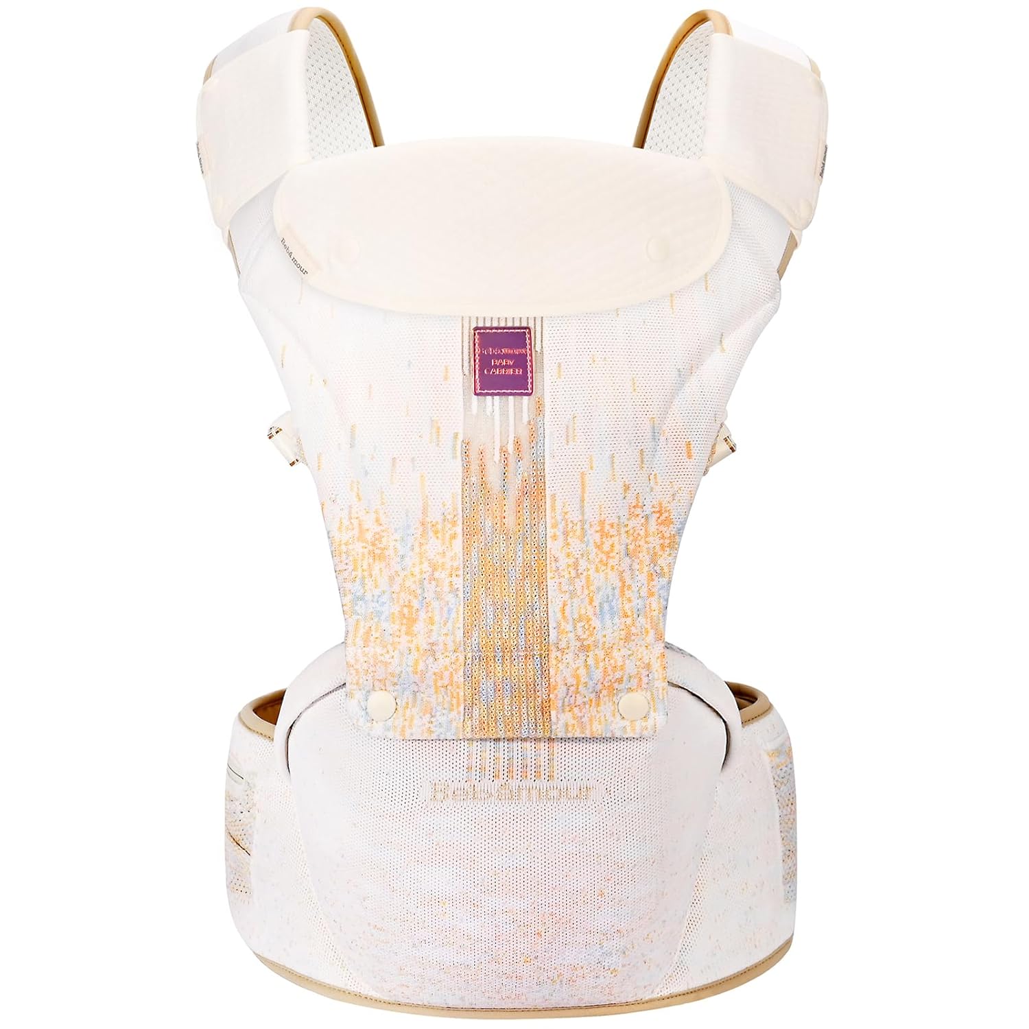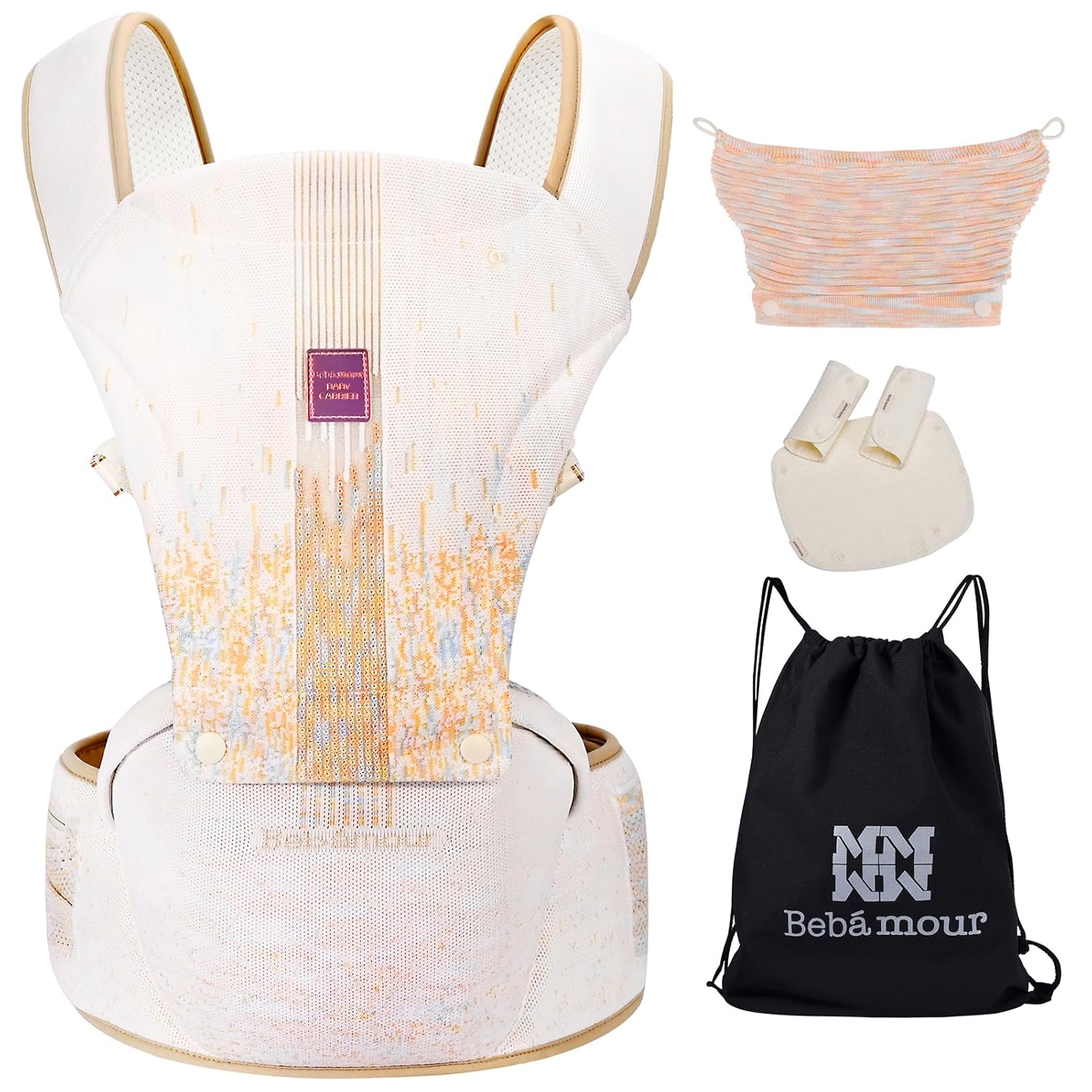 Bebamour Baby Carrier Newborn to Toddler with Hip Seat Baby Carrier Front and Back Carry Carrier with Head Hood, 3 PCS Teething Pads,Storage Bag (White-Knit)