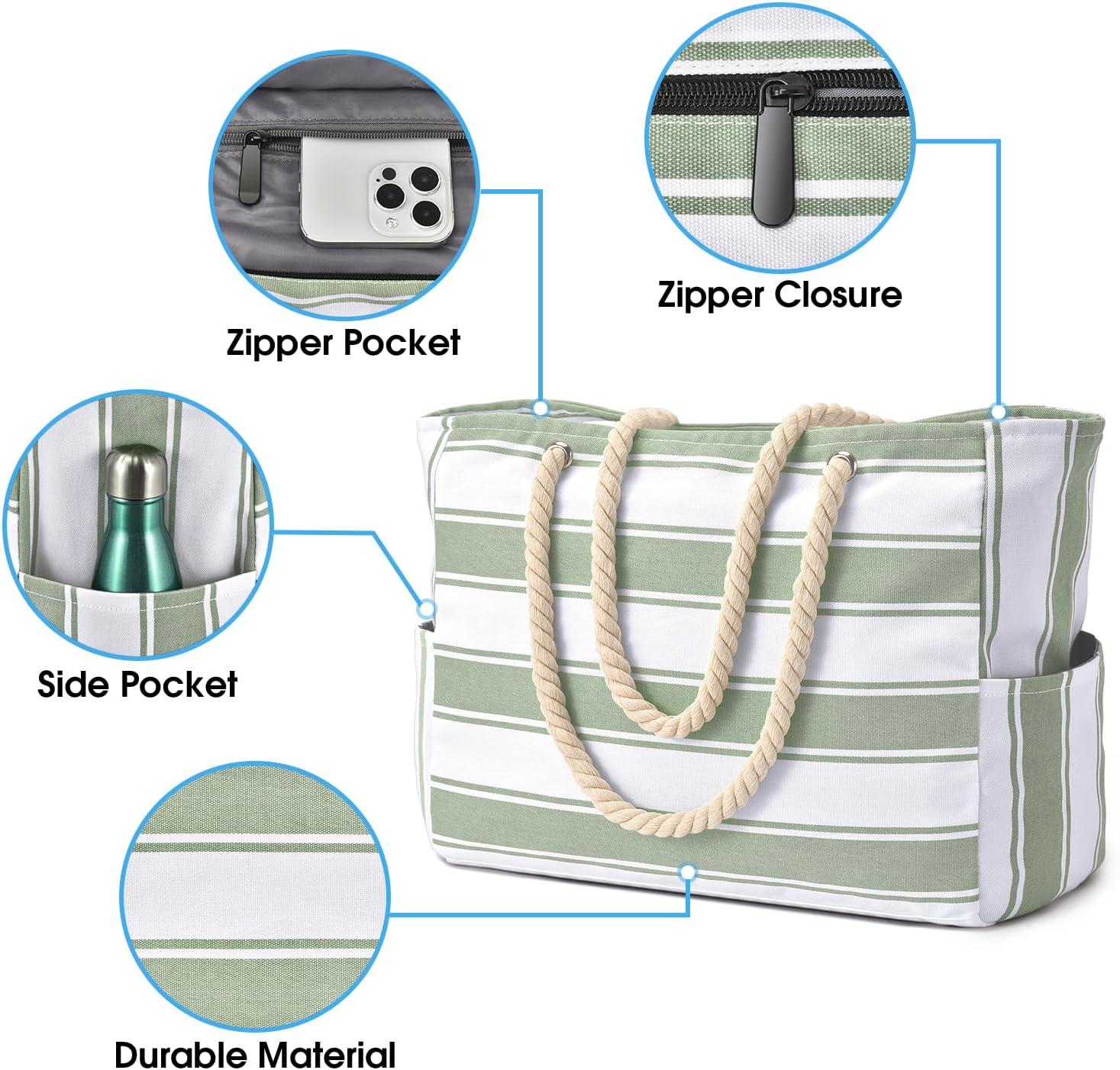 - Large Capacity: The beach bag tote can hold 4-6 large beach towels, extra clothes, shoes, sunblock, water bottles, beach toys, etc. Recommend for a beach vacation, tote bag, travel bag, duffel bag, swim pool bag, nurse bag, weekend bag, cruise must haves