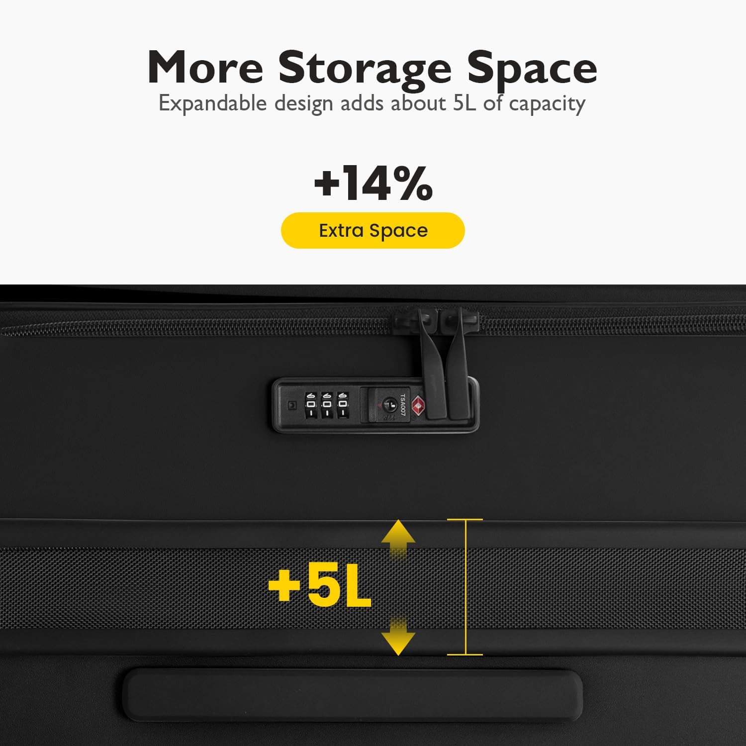 LEVEL8 Top Opening Carry on Luggage Expandable, Large Suitcases with Wheels Airline Approved, Hardside Luggage with Spinner Wheel for Men Women, 20 Inch, Black