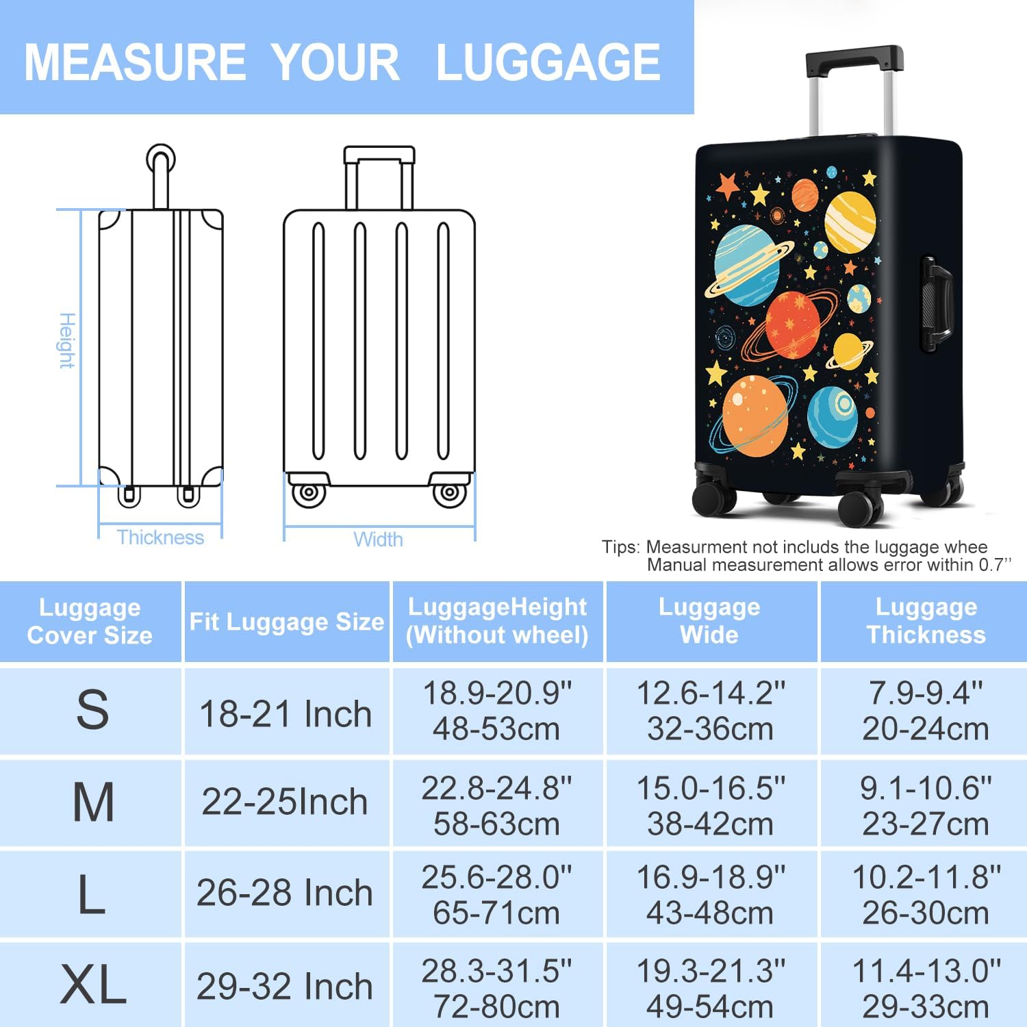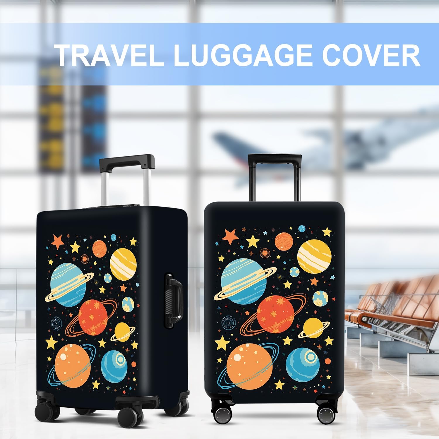 Planet Luggage Cover Washable Suitcase Protector Anti-Scratch,Stretchable Fit for 20-34Inch Luggage Durable Travel Bag Cover with Zipper Closure