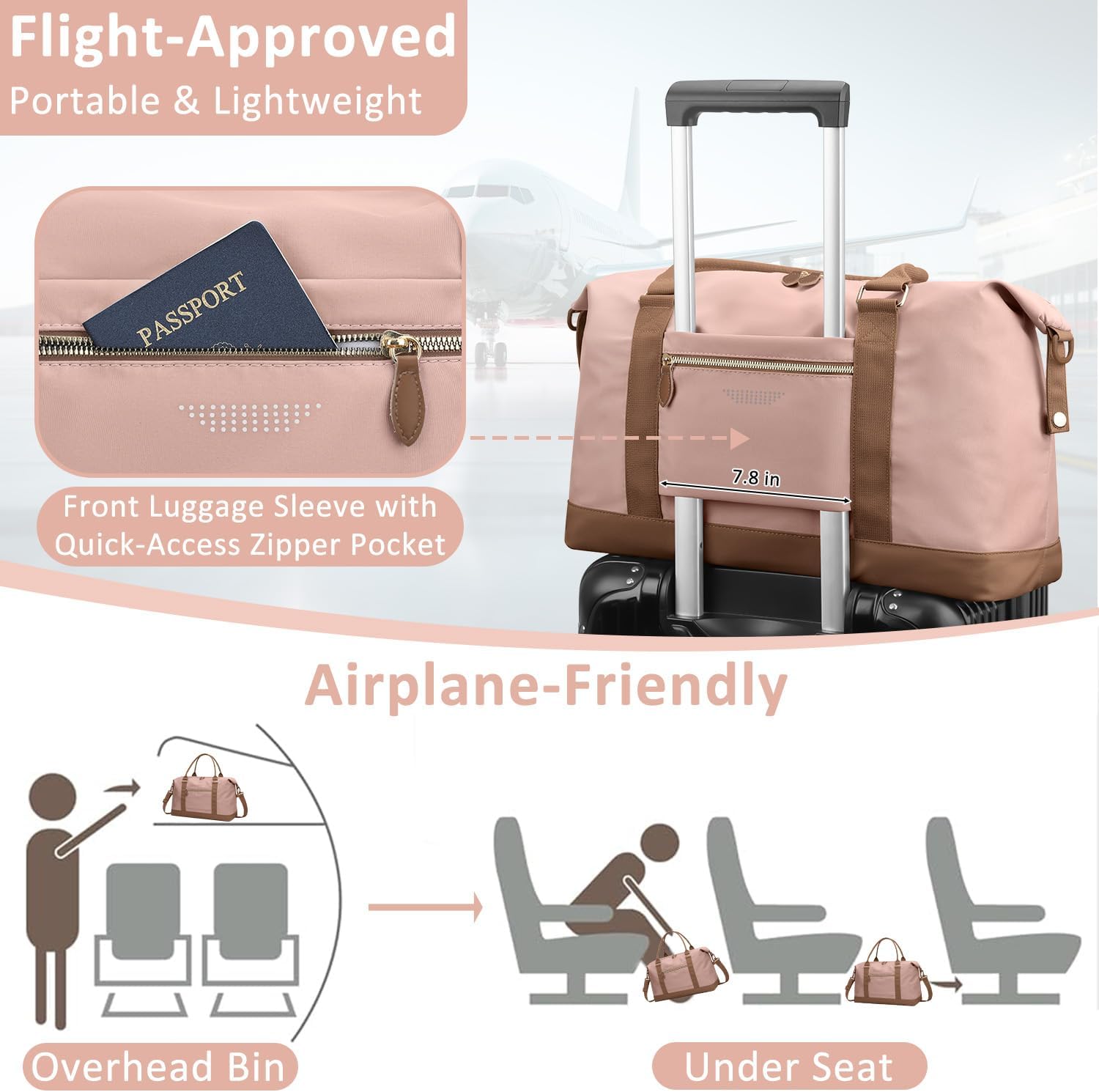 Travel Duffle Bag for Women, Weekender Bags, Hospital Bag for Labor Delivery, Lightweight Tote Duffel Overnight Bag with Luggage Sleeve, Airplane Travel Bags with Toiletry Bag, Large, Pink