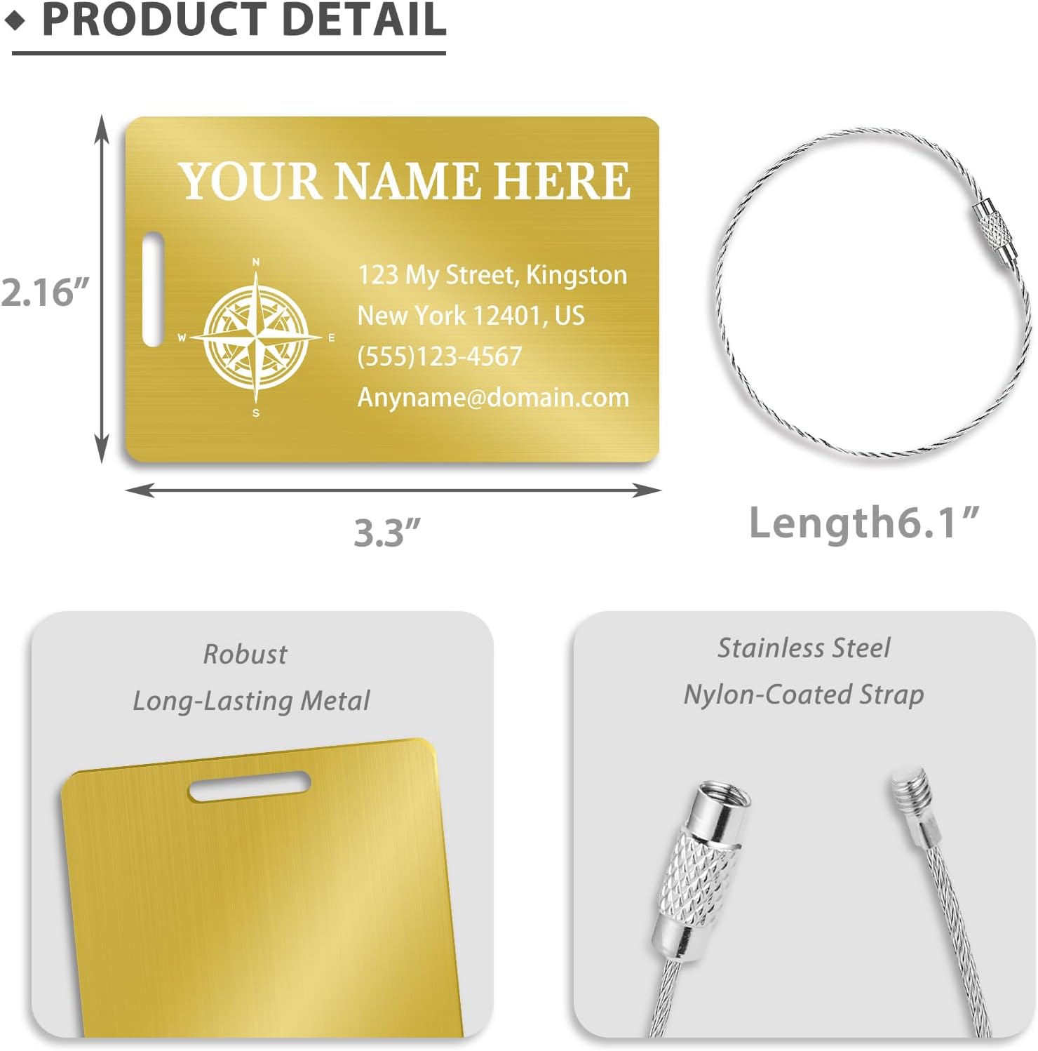 Personalized Luggage Tags for Suitcases (2/4/6/8 Pack) - Custom Engraved Metal Travel Tag, Customizable Pattern/Name/Text for Bags Backpacks Suitcases