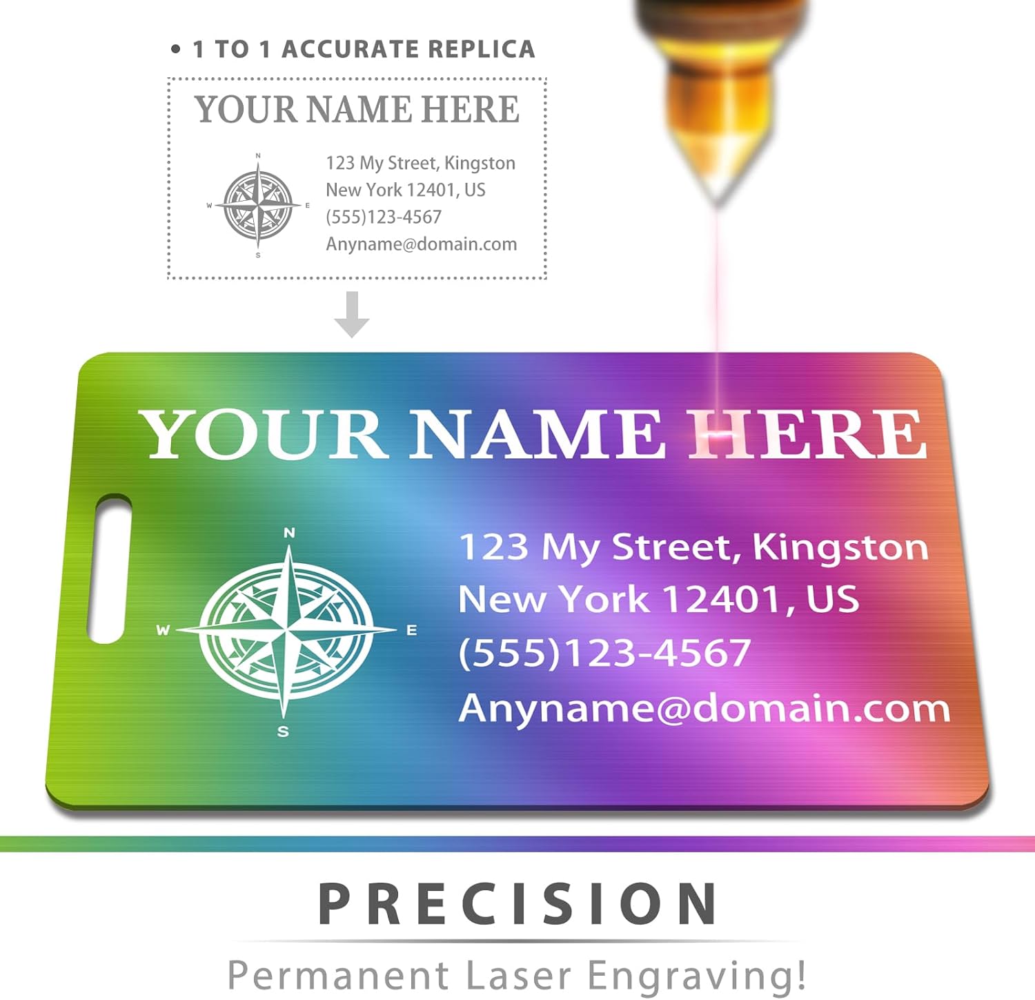 Personalized Luggage Tags for Suitcases (2/4/6/8 Pack) - Custom Engraved Metal Travel Tag, Customizable Pattern/Name/Text for Bags Backpacks Suitcases