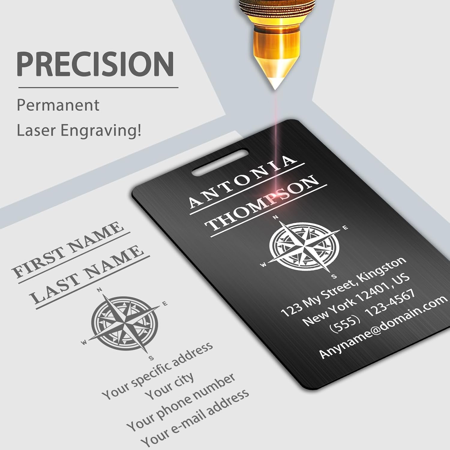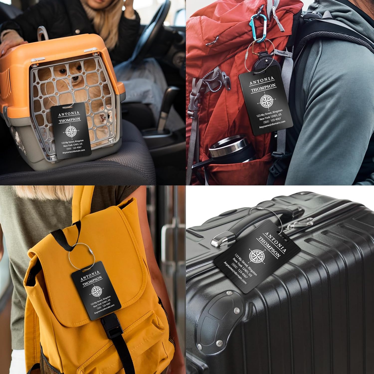 Personalized Luggage Tags for Suitcases (2/4/6/8 Pack) - Custom Engraved Metal Travel Tag, Customizable Pattern/Name/Text for Bags Backpacks Suitcases