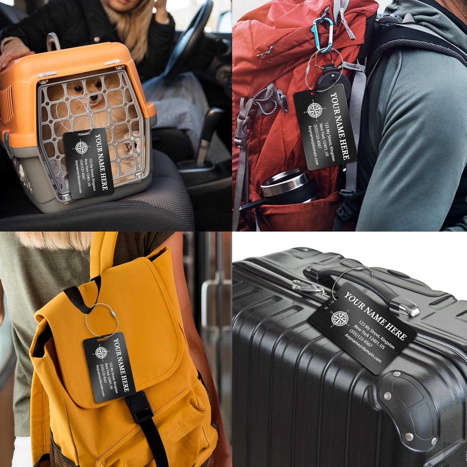 Personalized Luggage Tags for Suitcases (2/4/6/8 Pack) - Custom Engraved Metal Travel Tag, Customizable Pattern/Name/Text for Bags Backpacks Suitcases