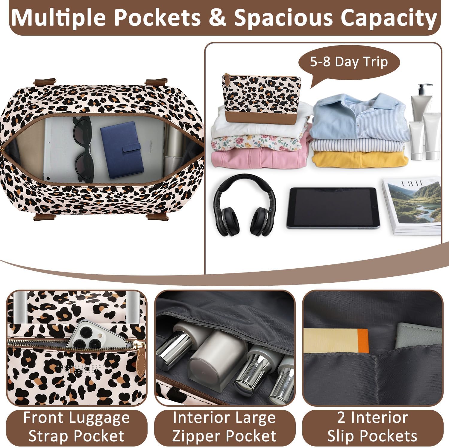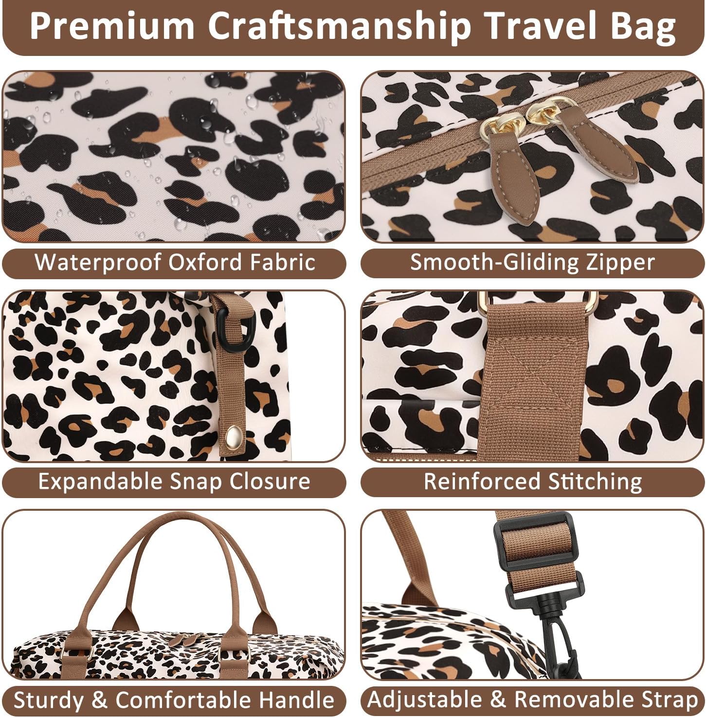 Travel Duffle Bag for Women, Weekender Bags, Hospital Bag for Labor Delivery,Lightweight Tote Duffel Overnight Bag with Luggage Sleeve,Airplane Travel Bags with Toiletry Bag,X-Large,Leopard
