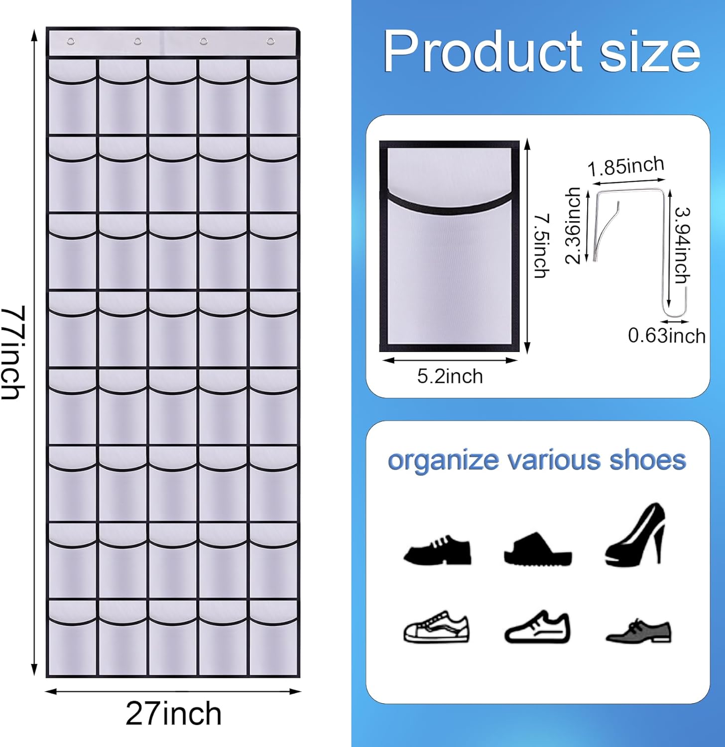 - Easy to Set Up:The 4 sturdy metal hooks could set up well in the gap between the door and the frame,strong enough to tolerate a lot of weight from shoes you put in.
