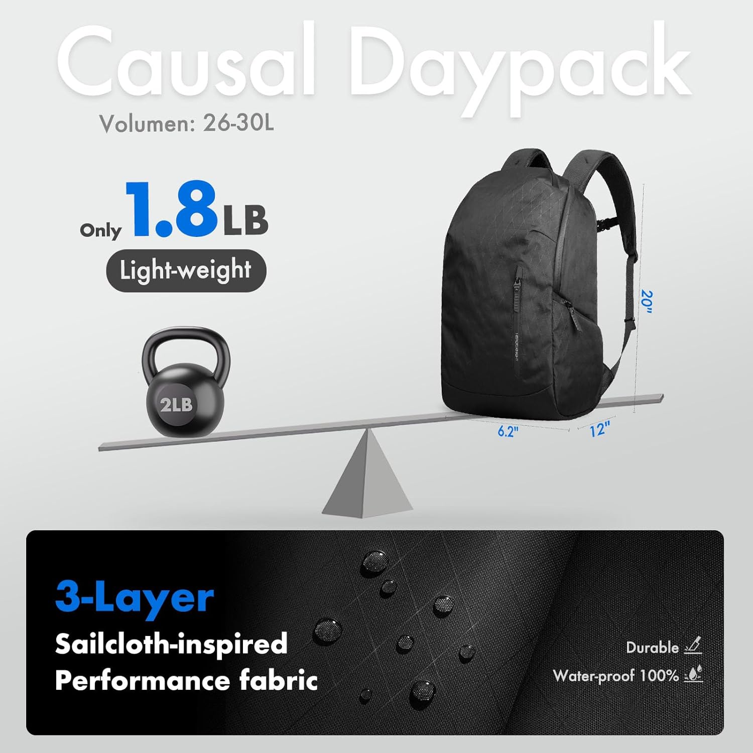 - 【Premium 3-Layer Sailcloth-Inspired Fabric】 Crafted from high-performance 3-layer sailcloth-inspired material, this laptop backpack is fully waterproof, lightweight, and built for strength. Reinforced with structural enhancement technology, it resists deformation under pressure and delivers a premium texture suitable for daily commuting, or outdoor use