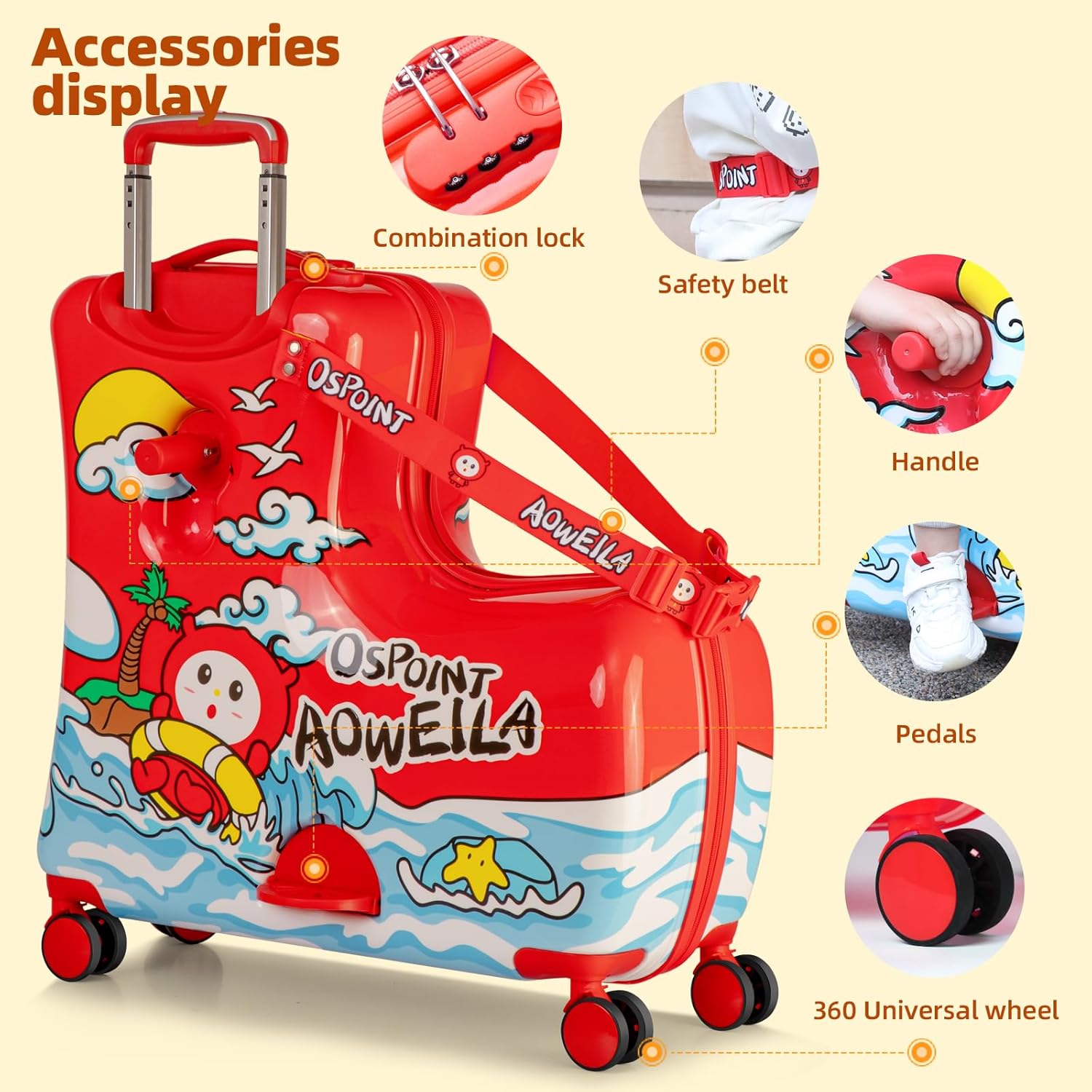 - Smooth Spinner Wheels: With its 360° spinner wheels, this children's ride-on suitcase ensures effortless mobility for both pulling and riding
