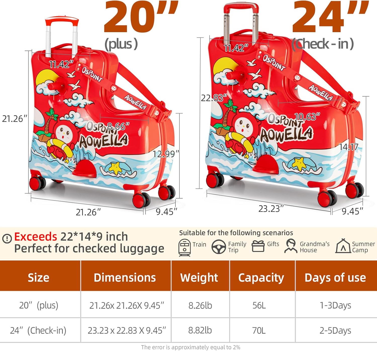 Kids' Lightweight Ride on Luggage with Spinner Wheels & Foldabe Design (Red, 20"+ Aged 1-3 Toddler),Children Holiday Birthday Gift