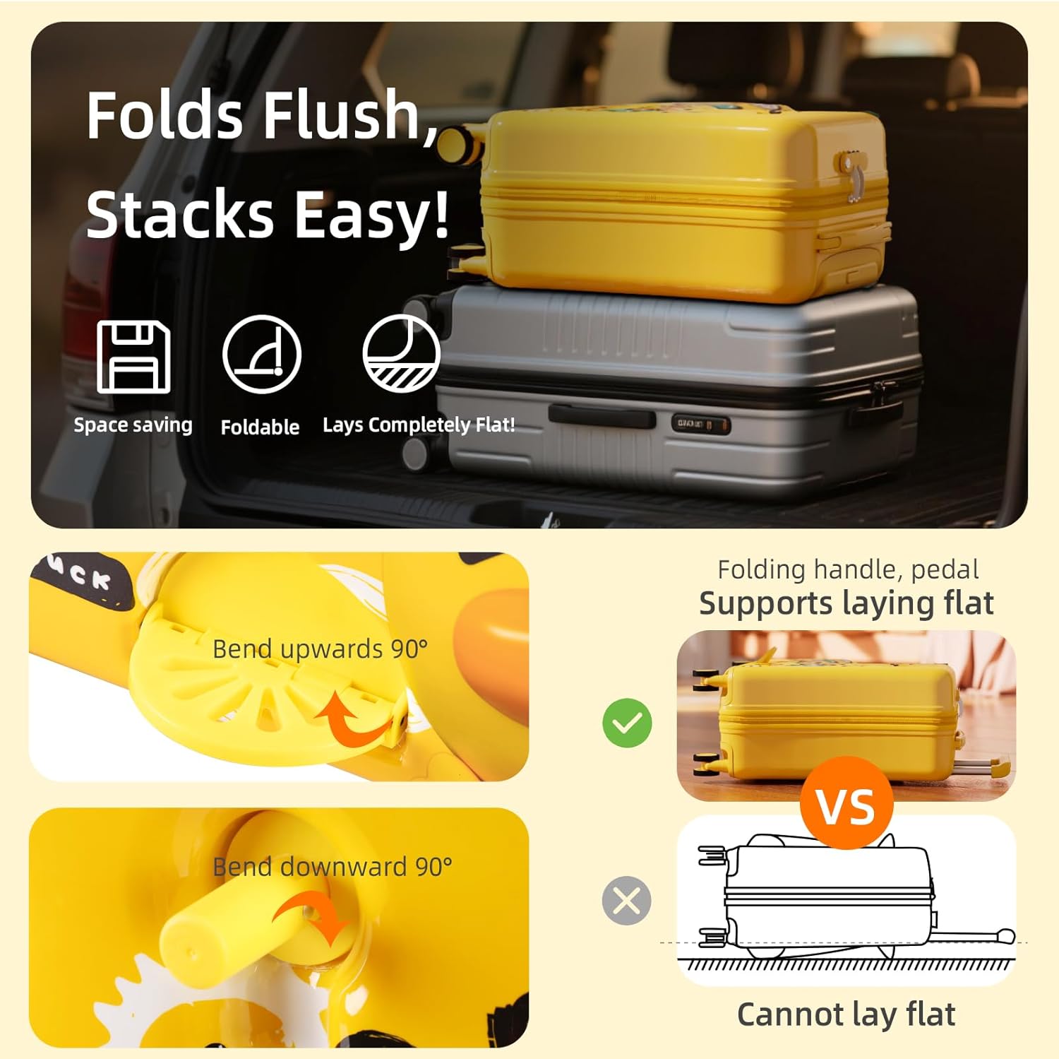 Kids' Lightweight Ride on Luggage with Spinner Wheels & Foldabe Design (Yellow Good, 20"+ Aged 1-3 Toddler)