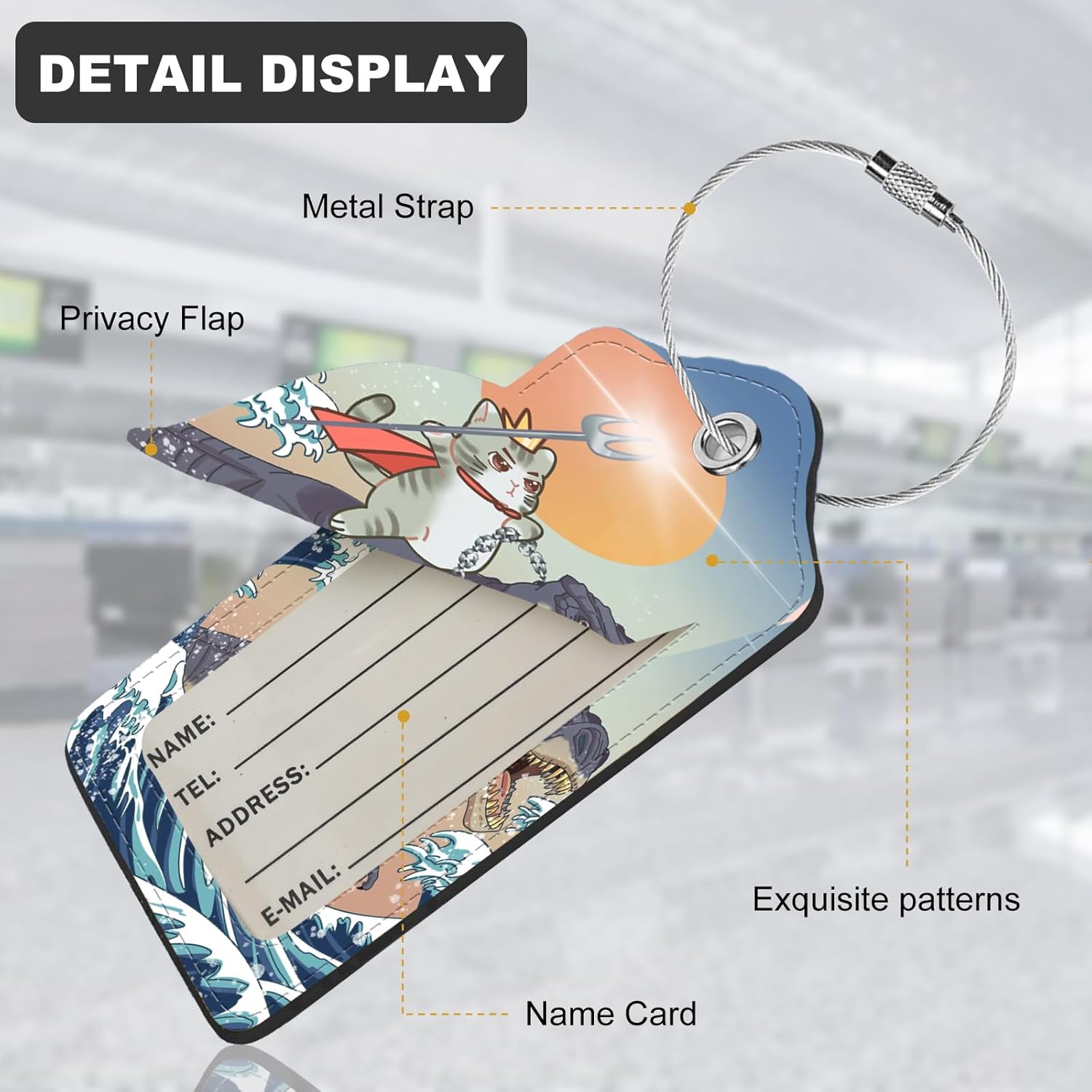 2Pack Luggage Tags for Suitcases, Cute Unique Pu Leather Cruise Luggage Tag with Privacy Cover ID Label Address Card and Metal Ring Suitable for Women Men Kids Travel Bag Dinosaurs and Cats