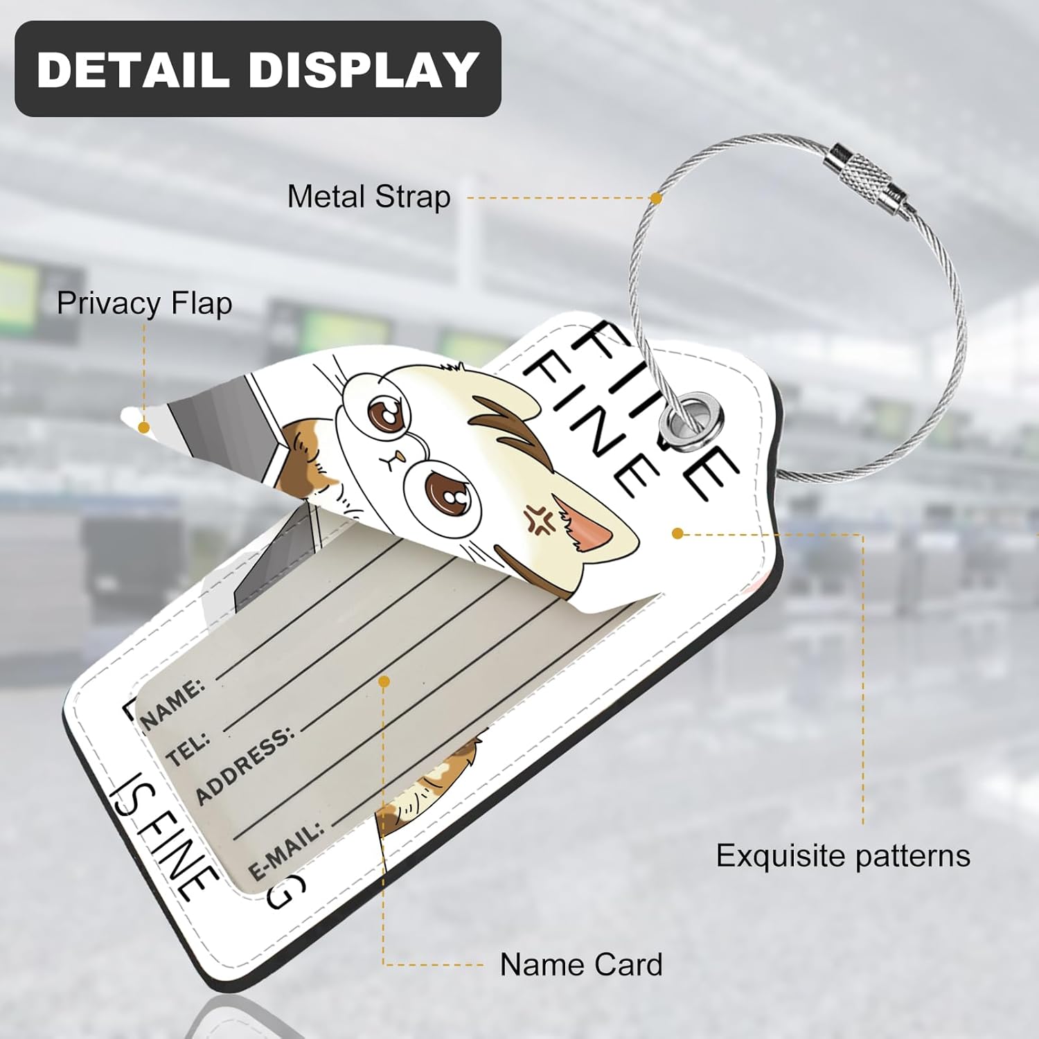 2Pack Luggage Tags for Suitcases, Cute Unique Pu Leather Cruise Luggage Tag with Privacy Cover ID Label Address Card and Metal Ring Suitable for Women Men Kids Girls Travel Bag Tag Angry Cat