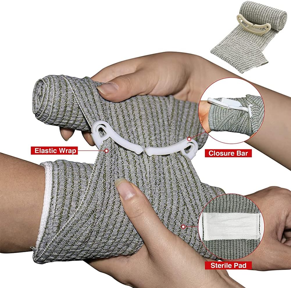 - [Portable Carry] - Compact Emergency kit with lots of stuff. This kit contains the most use friendly, compact and popular survival and first aid supplies for massive bleeding control on the market, which includes: tactical pressure dressing, and compressed gauze