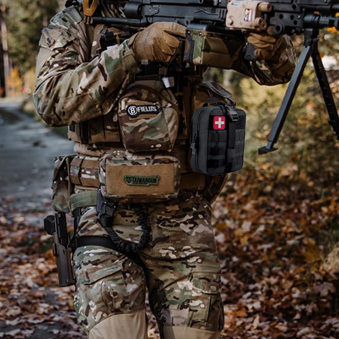 - [Perfect 'Glovebox-Sized' Triage Kit] - As an Everyday Carry pouch, this pouch is the perfect size to attach on a tactical vest, combat belt, or a rucksack with the MOLLE system, while providing an easy access to all the essentials.I love the slim design while being able to hold a solid amount of 1st aid items while still having room to add more items of desired