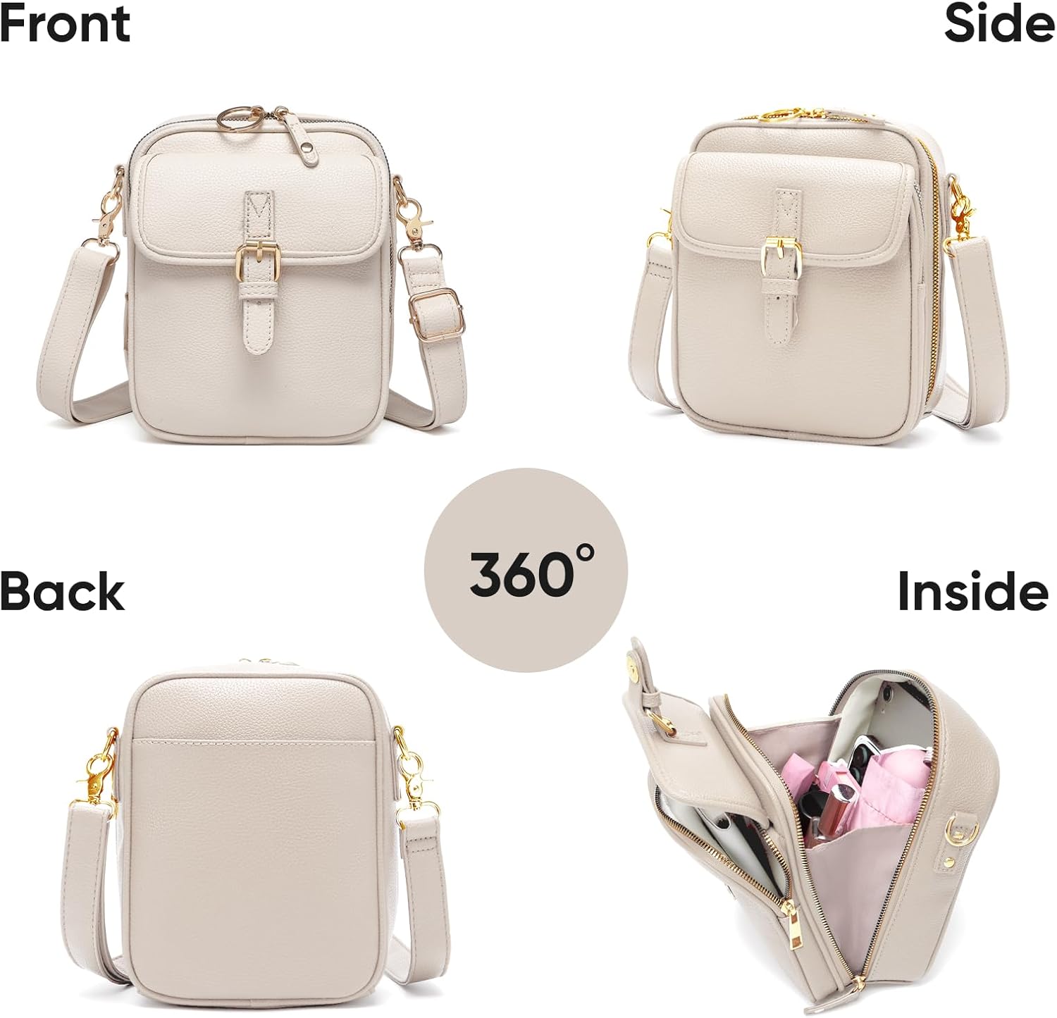 • Organized Storage for Daily Essentials:This small leather crossbody bag for women features dual compartments, a phone pocket, 10 card slots, and extra zip pockets—perfect for keeping your wallet, phone, and keys organized and accessible whether you’re running errands or traveling.