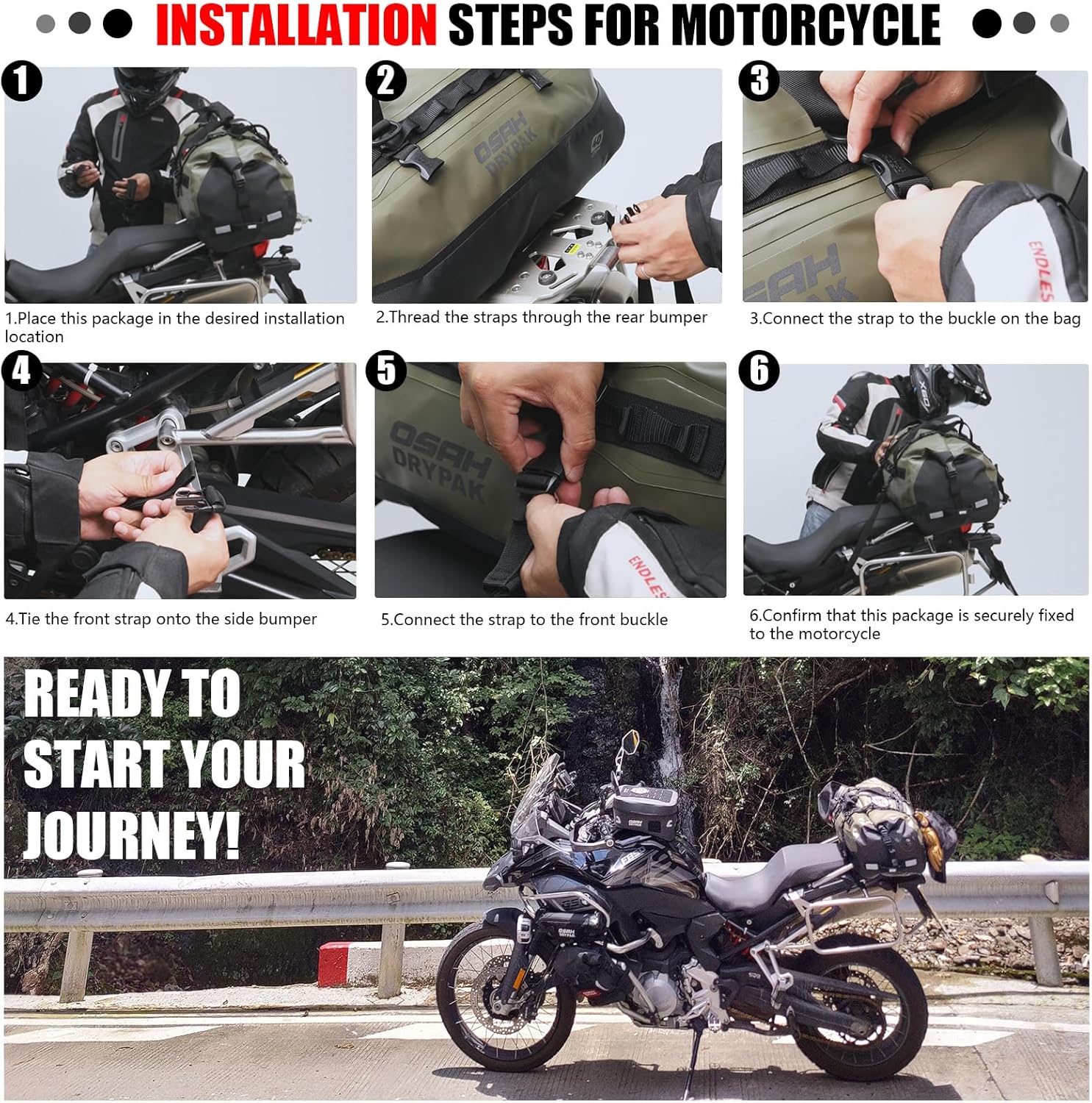 - TRAVEL-READY SECURITY: Luggage bags can be securely fastened to motorcycles, boats, kayaks, and bicycles, ensuring stability even on rough terrain. The reflective elements on the bag body can improve visibility at night and enhance the safety of nighttime cycling. The dry bag is equipped with the Molly system, which can better carry excess accessories and increase daily playability