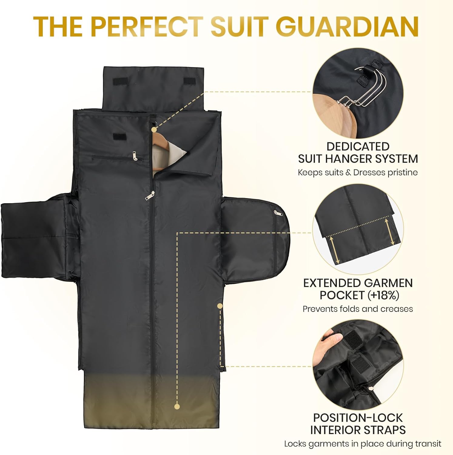 - 【WRINKLE-FREE MASTERY】Our innovative design protects delicate attire with: (1) an extended 3D suit bag (18% longer than standard) for fold-free storage of suits and gowns; (2) independent compartments to prevent friction; (3) secure velcro straps to keep clothes firmly in place during transit; (4) a detachable luggage bag for removing suits elegantly . From storage to access, we care more about the perfect condition of your clothes than you do!
