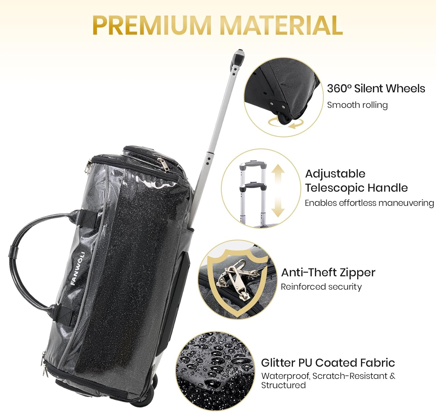 - 【UPGRADE DURABLE MATERIAL】Crafted from premium high-density nylon with a waterproof glitter-finish PU coating for triple protection against splashes, tears, and scratches. Features heavy-duty lockable zippers + tested 360° silent wheels (performed flawlessly on concrete, carpet, gravel & more). Most airline-approved carry-on size (20.87"x13.78"x9.06") at just 5.07 lbs (20% lighter). Enjoy effortless, stress-free travel.