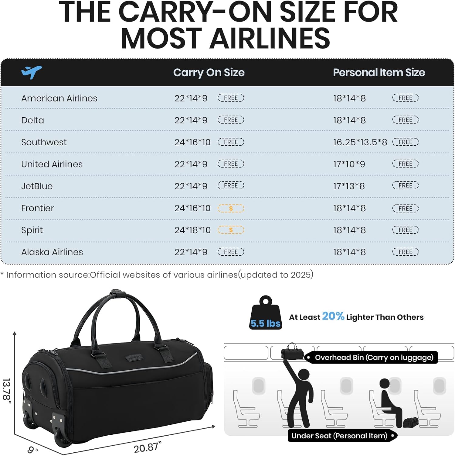 - 【QUALITY MATERIALS】Fanwoli garment bag with wheels is made of high-density premium nylon material with triple protection against splash, tear and scratch. Featuring explosion-proof locking zippers and durable 360° silent wheels (tested on common floors such as concrete, carpet, gravel, etc.). With an extra-large 20.87” x 13.78” x 9.06” capacity yet weighing just 5.51 lbs (20% lighter than others), it meets most airline carry-on standards—making travel effortless and stress-free.