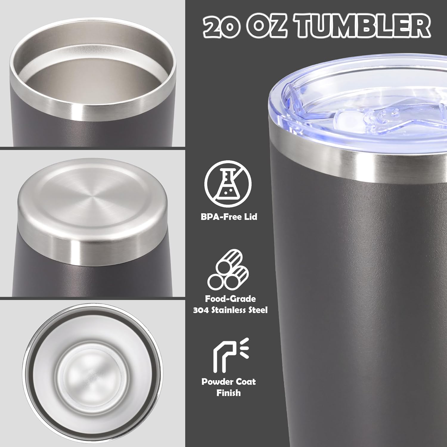 20oz Tumbler Bulk Stainless Steel Tumbler Cup with Lid Vacuum Insulated Double Wall Travel Mug, Durable Powder Coated Travel Coffee Tumbler Mug for Hot & Cold Drinks, Grey,8 Pack