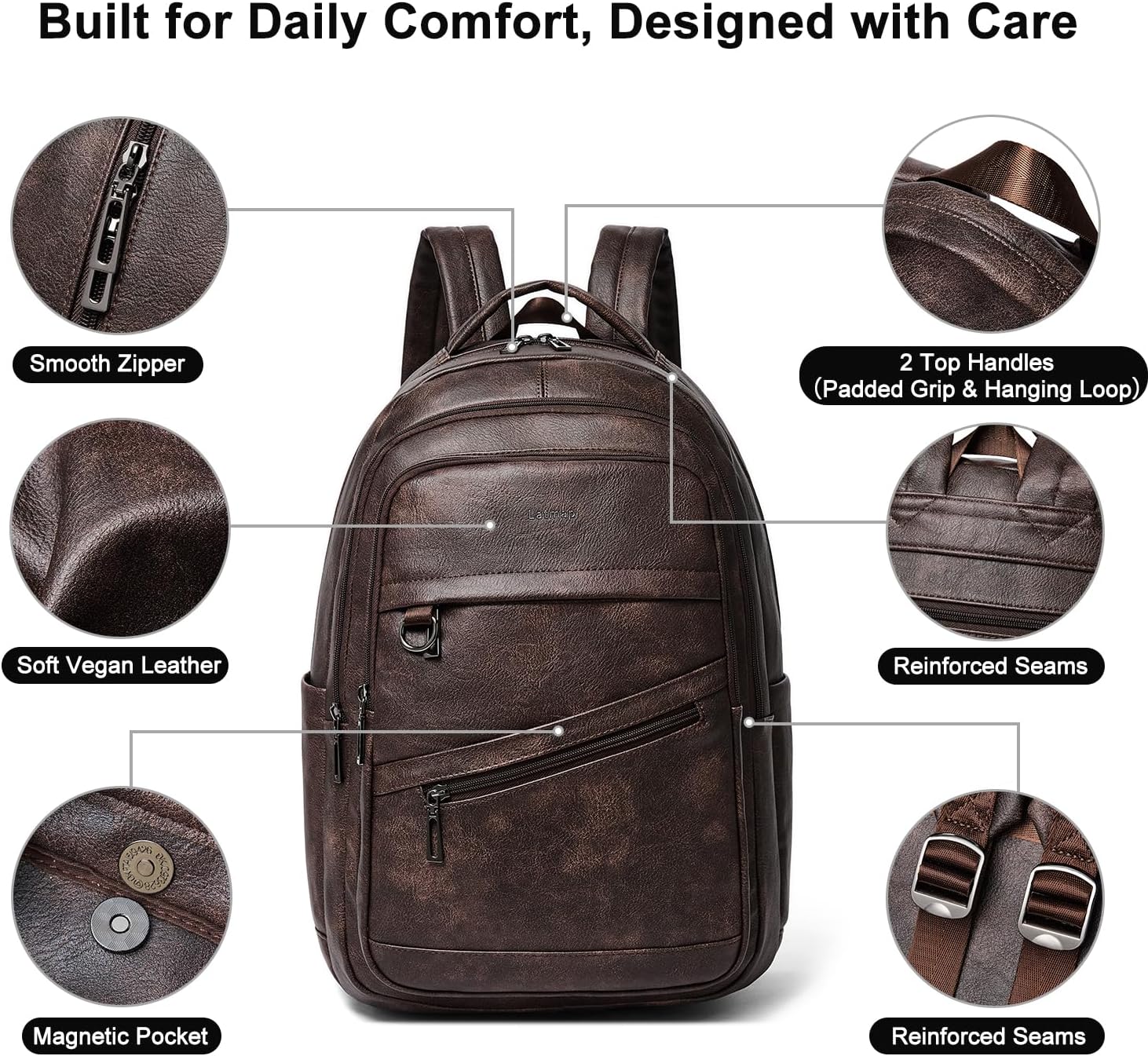 - Soft Vegan Leather with Everyday Durability: Crafted from soft vegan leather, this brown backpack purse for women delivers style with durability. Reinforced seams and water-resistant material make it a reliable choice for daily commutes, hikes, or weekend outings. It easily transitions into a backpack purse for women for everyday versatility.