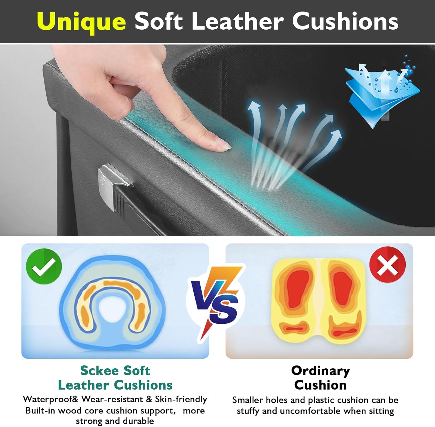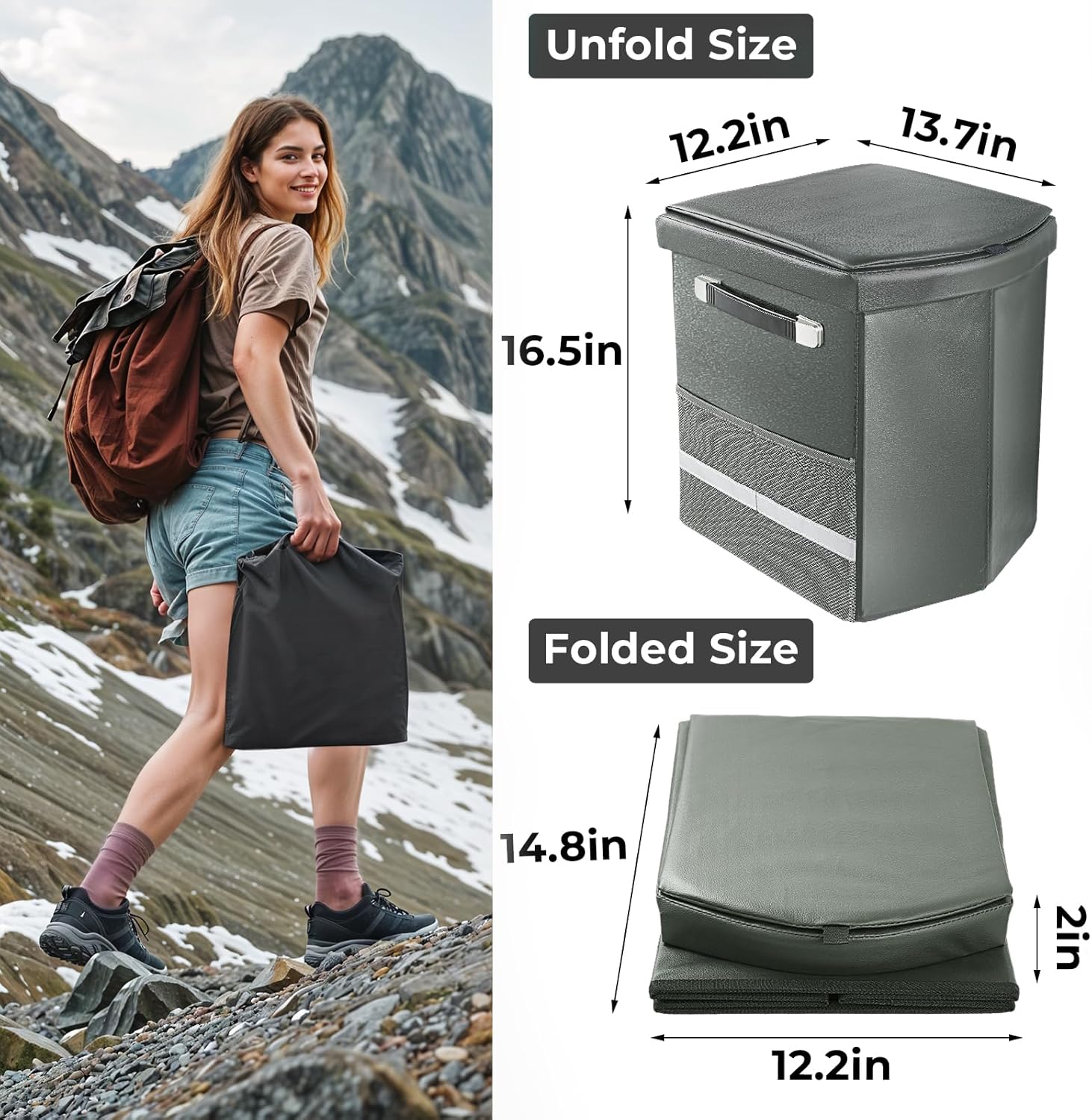 - 🏕️【Comfort and Sturdy】Our newly upgraded foldable toilet is made of sturdy density board and high-quality leather, which surprisingly sturdy and soft once set up. Just wipe with water to make it as good as new. Use it just like any other bucket-style portable camping toilet. If you're keen to avoid communal facilities or planning to go camping regularly, our camp toilet is a sensible option. It will make your entire use of the camp toilet more comfortable. It holds up to 440 lbs,suitable for the whole family!