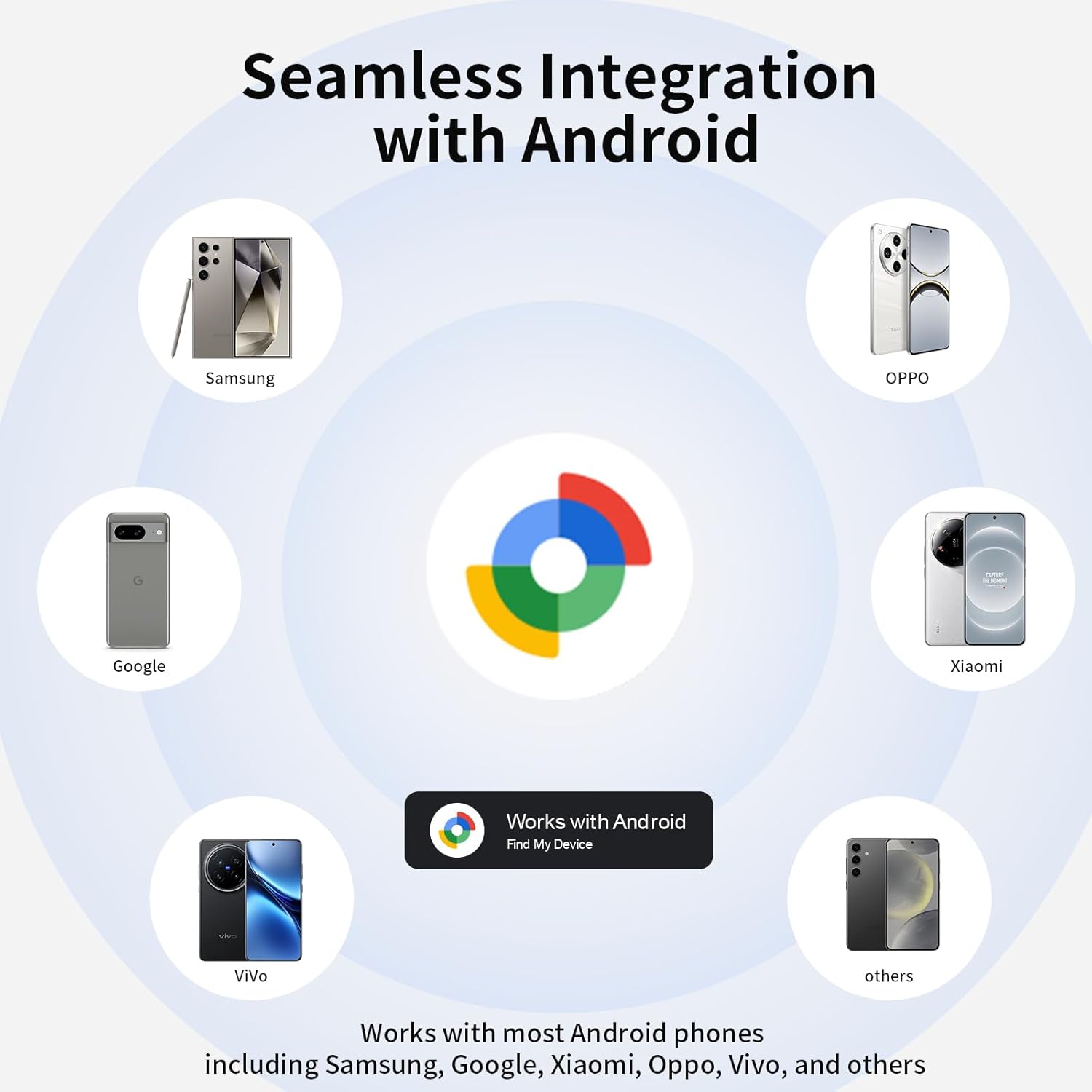- Full Android Compatibility, Seamless Connection:Specially optimized for the Android system, supporting Android 9.0 and above versions, one click Bluetooth 5.2 quick pairing, compatible with 99% Android phones/tablets. Google Certified,no need for additional apps, instantly locate through Find Hub.