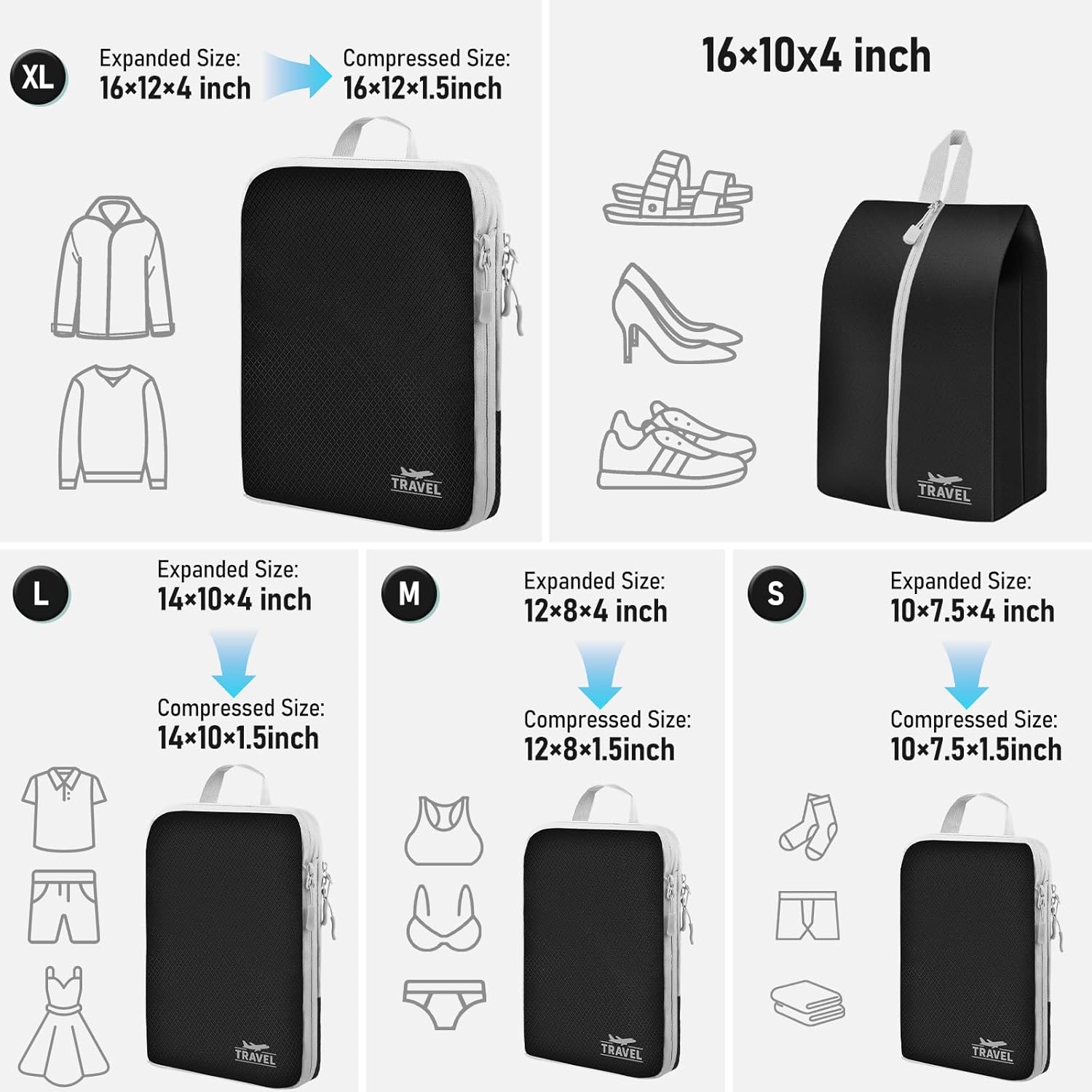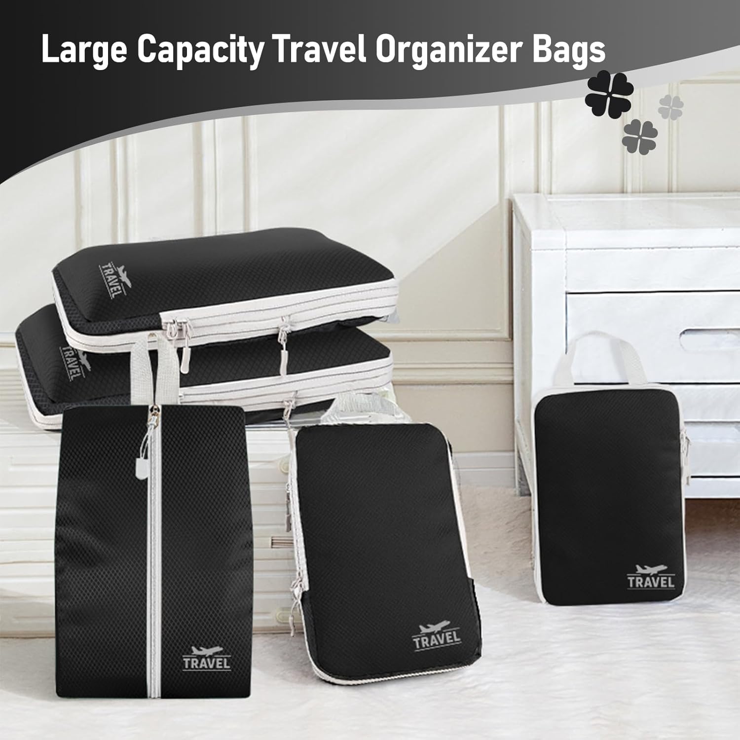 - Space-Saving Compression Design – Achieve up to 60% more luggage space with our dual-zipper compression system! Simply pack clothes into the cubes, zip the outer layer tightly, and compress bulkier items like jackets, sweaters, or seasonal home-storage fabrics. Perfect for maximizing suitcase capacity or organizing closets