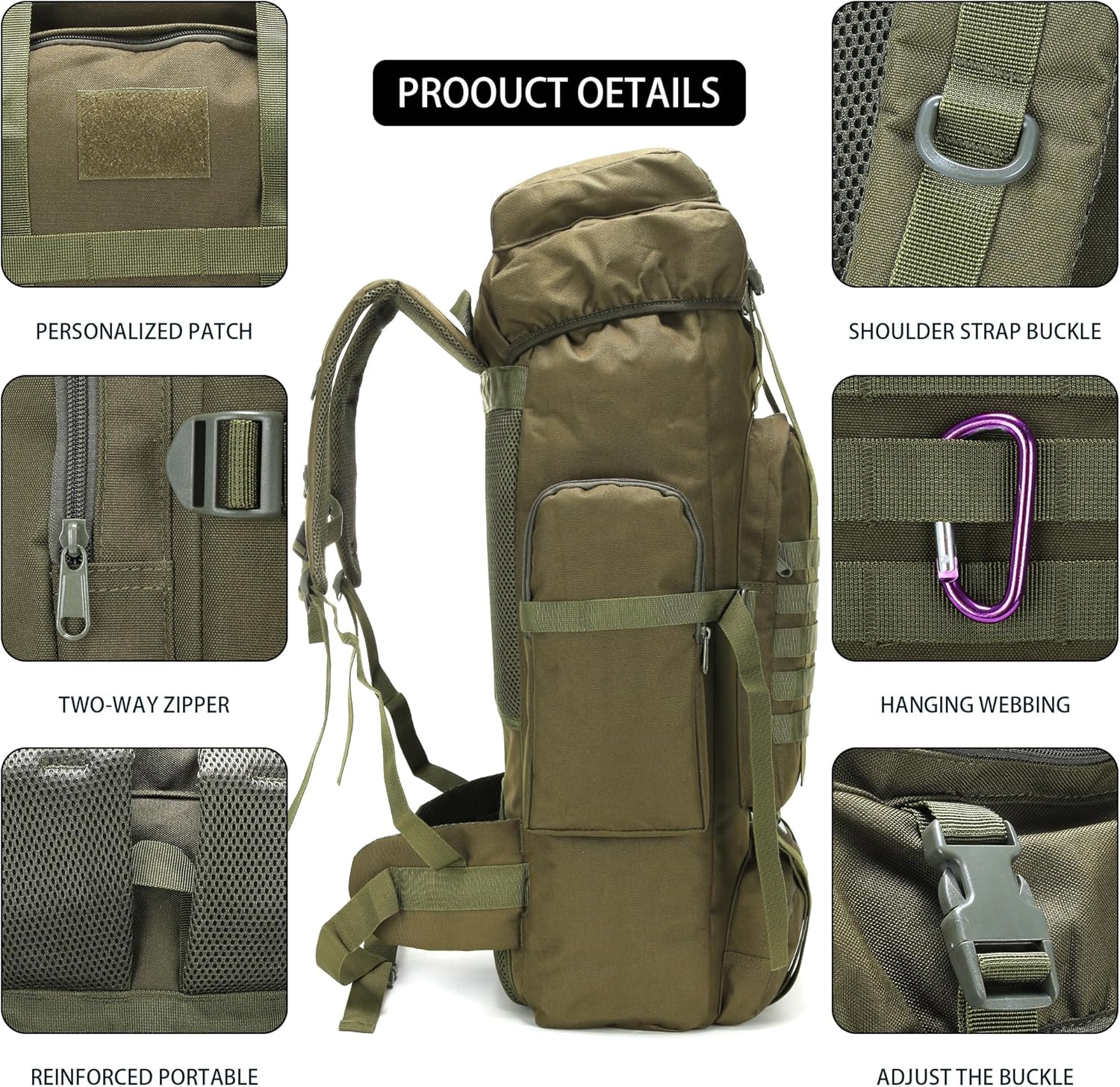 - 【Hiking Backpack Structure】: The 70L camping backpack main compartment is drawstring closed, hiking backpack roomy enough for you storage hiking gear, shoes and luggage, 1 laptop compartment, 1 front zipper pocket and 2 side pocket for separate and orderly storage.