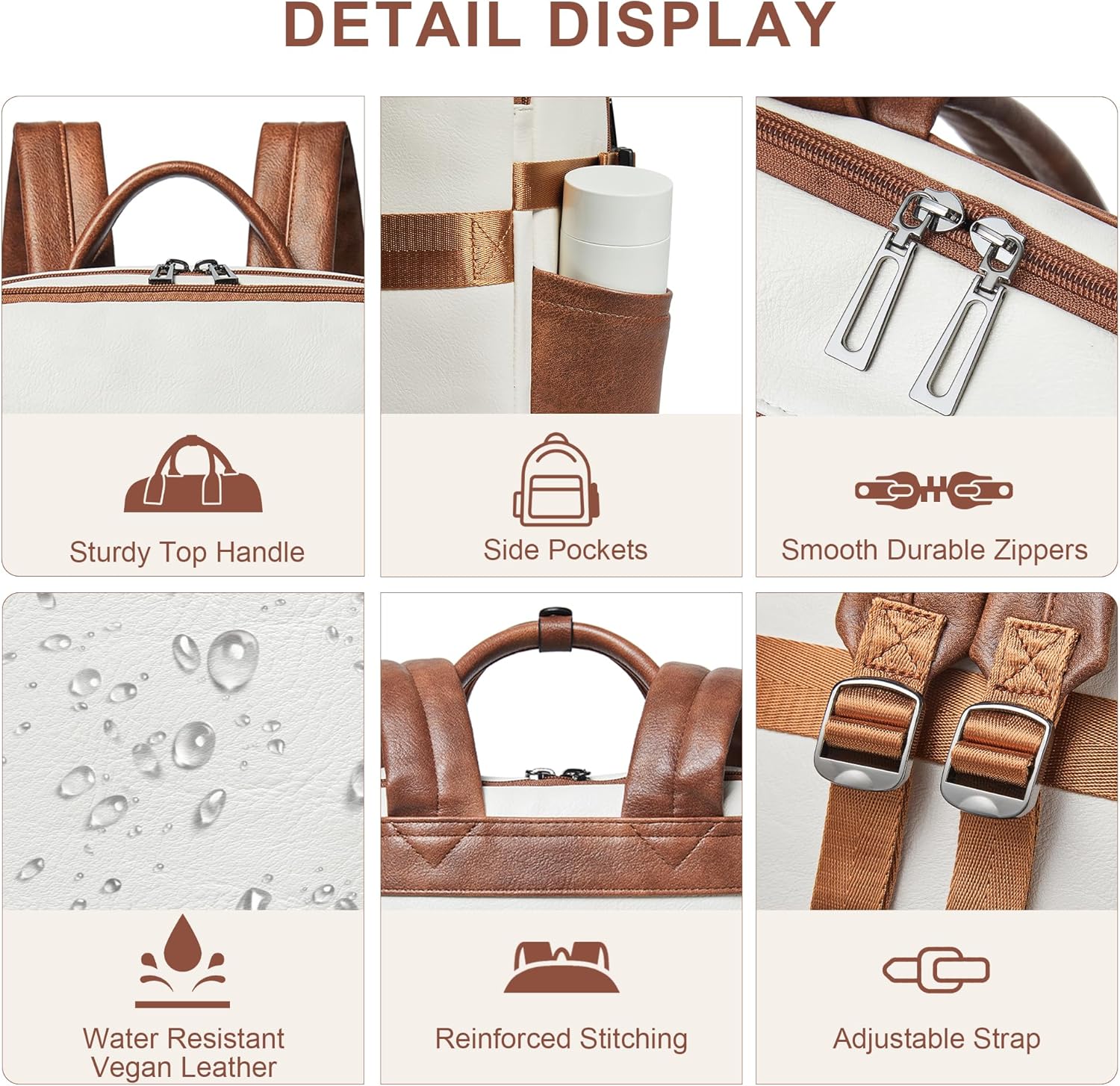 Shrrie Laptop Backpack for Women,Vegan Leather Backpack Work Computer Backpacks fits 16" Laptop,Water Resistant Teacher Nurse Casual Daypack for Weekender Camping Travel,Beige with Brown