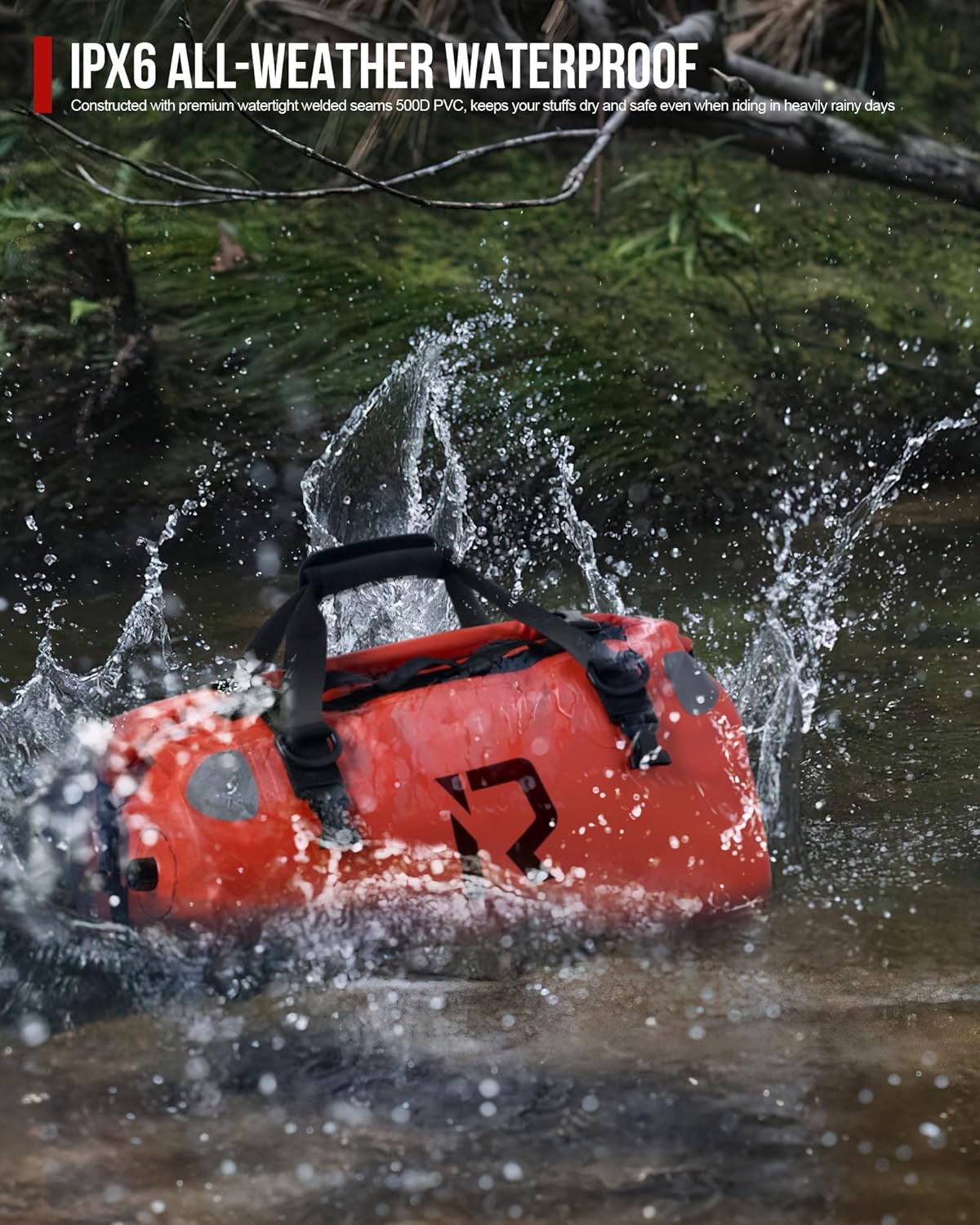 IRON JIA'S Motorcycle Dry Bag - Waterproof Duffle & Luggage Tail Bag Saddle Bags with Roll Top Closure, Shoulder Straps, Inner Pocket and Mesh Pocket (Orange, 30L)