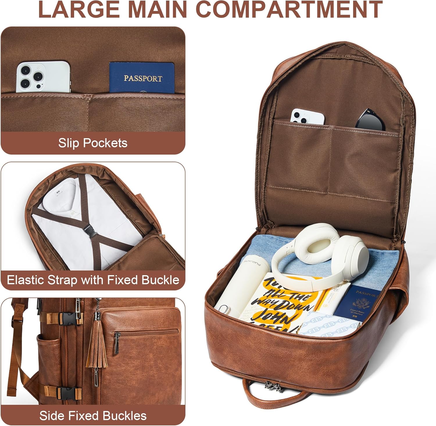 - Leather Backpack for Women: This womens backpack for work is made of high-quality PU vegan leather that can easily withstand rain and snow.The ergonomic shoulder straps with adjustable metal buckles effectively reduce strain on the shoulders,and the women laptop backpack with luggage strap to makes your traveling more convenient.This backpack laptop is an ideal choice for people who like short trips