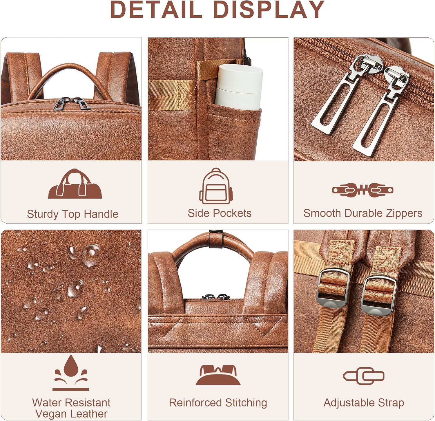Shrrie Laptop Backpack for Women,Vegan Leather Backpack Work Computer Backpacks fits 16" Laptop,Water Resistant Teacher Nurse Casual Daypack for Weekender Camping Travel,Two-toned Brown