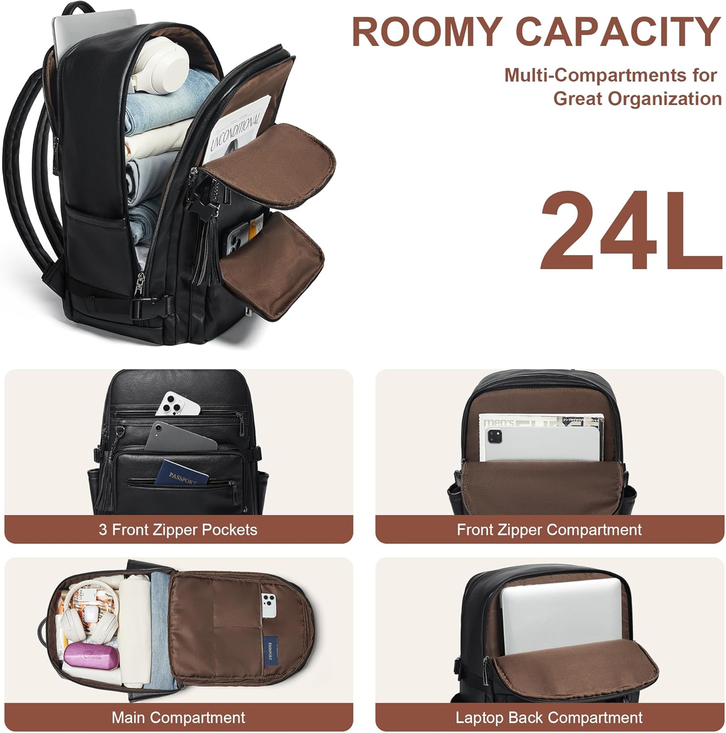 - Leather Backpack for Women: This womens backpack for work is made of high-quality PU vegan leather that can easily withstand rain and snow.The ergonomic shoulder straps with adjustable metal buckles effectively reduce strain on the shoulders,and the women laptop backpack with luggage strap to makes your traveling more convenient.This backpack laptop is an ideal choice for people who like short trips