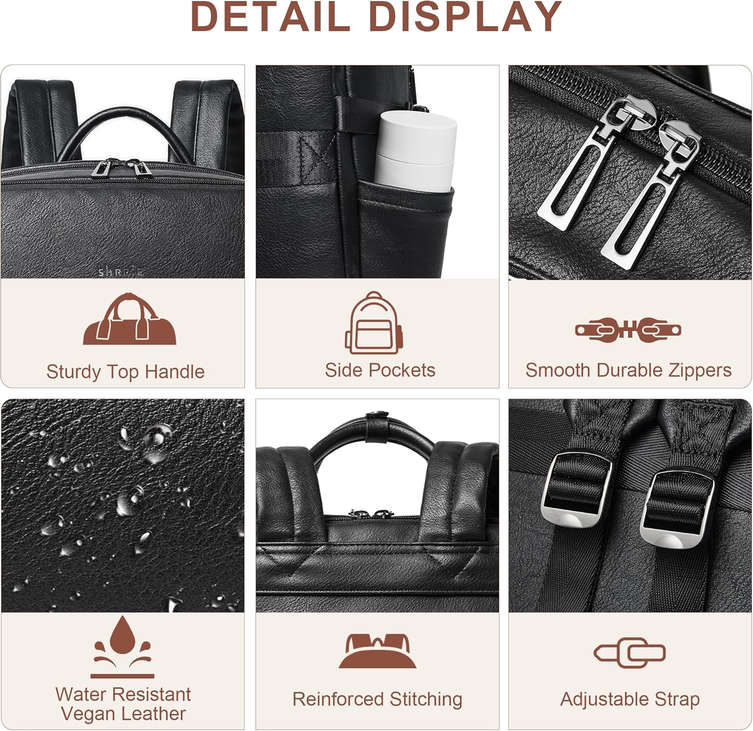 Shrrie Laptop Backpack for Women,Vegan Leather Backpack Work Computer Backpacks fits 16" Laptop,Water Resistant Teacher Nurse Casual Daypack for Weekender Camping Travel,Two-toned Black