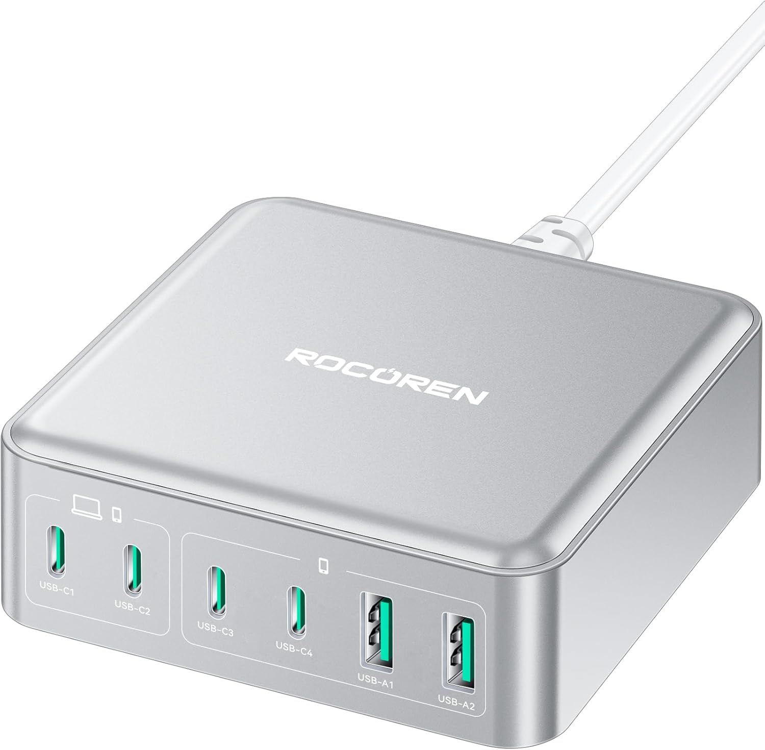 270W USB C Charger Block, Rocoren 6 Port Multi USB-C Charging Station,100W PD Fast USBC Gan Charger Station Hub Dock for Multiple Devices, Laptop Type C for MacBook/iPhone 16/iPad/Galaxy S25