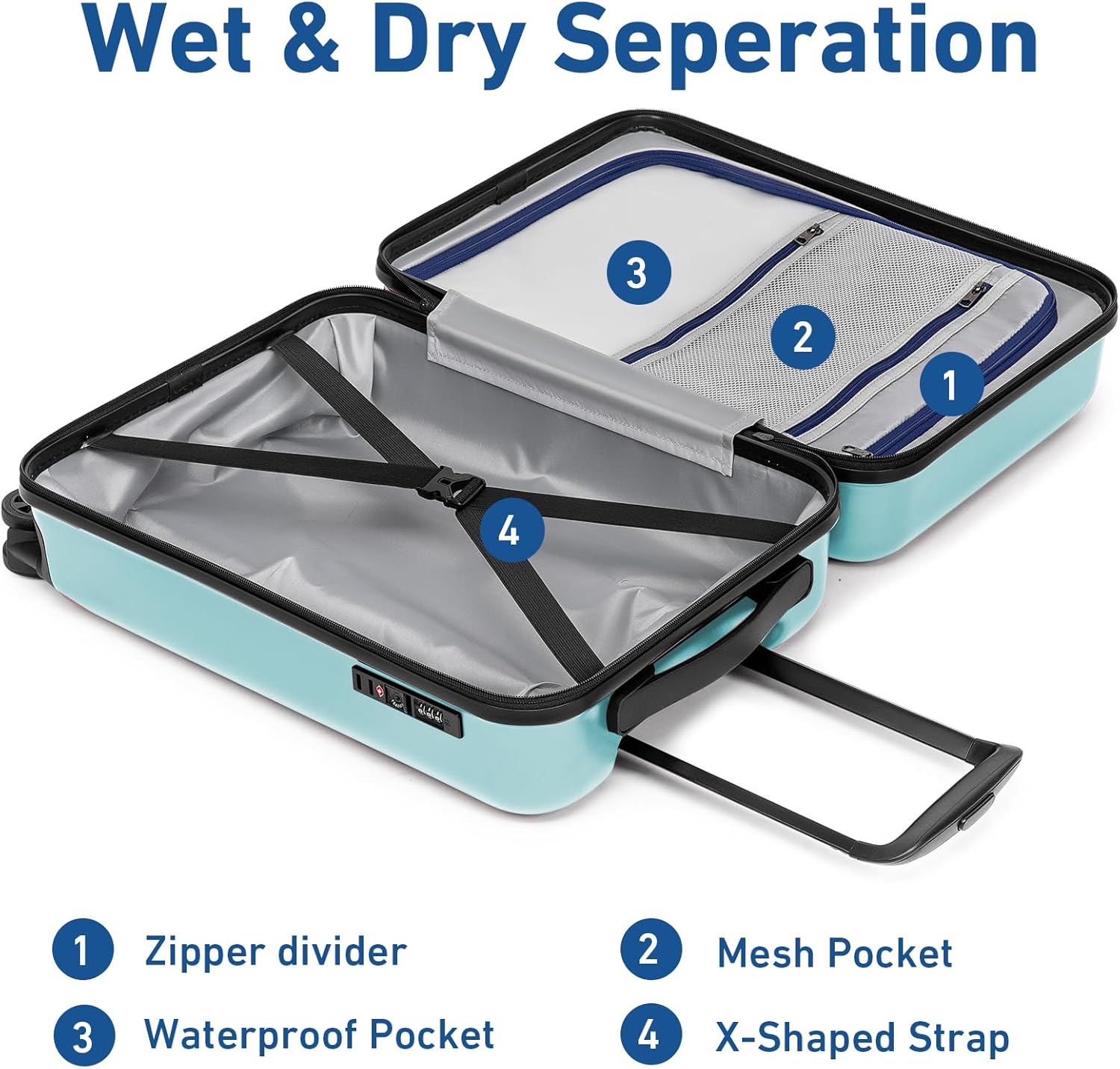 KYME Suitcase Hardshell With Double Spinner Wheels, PC+ABS TSA Lock Travel Luggage (Mint Green, 20" Carry On)