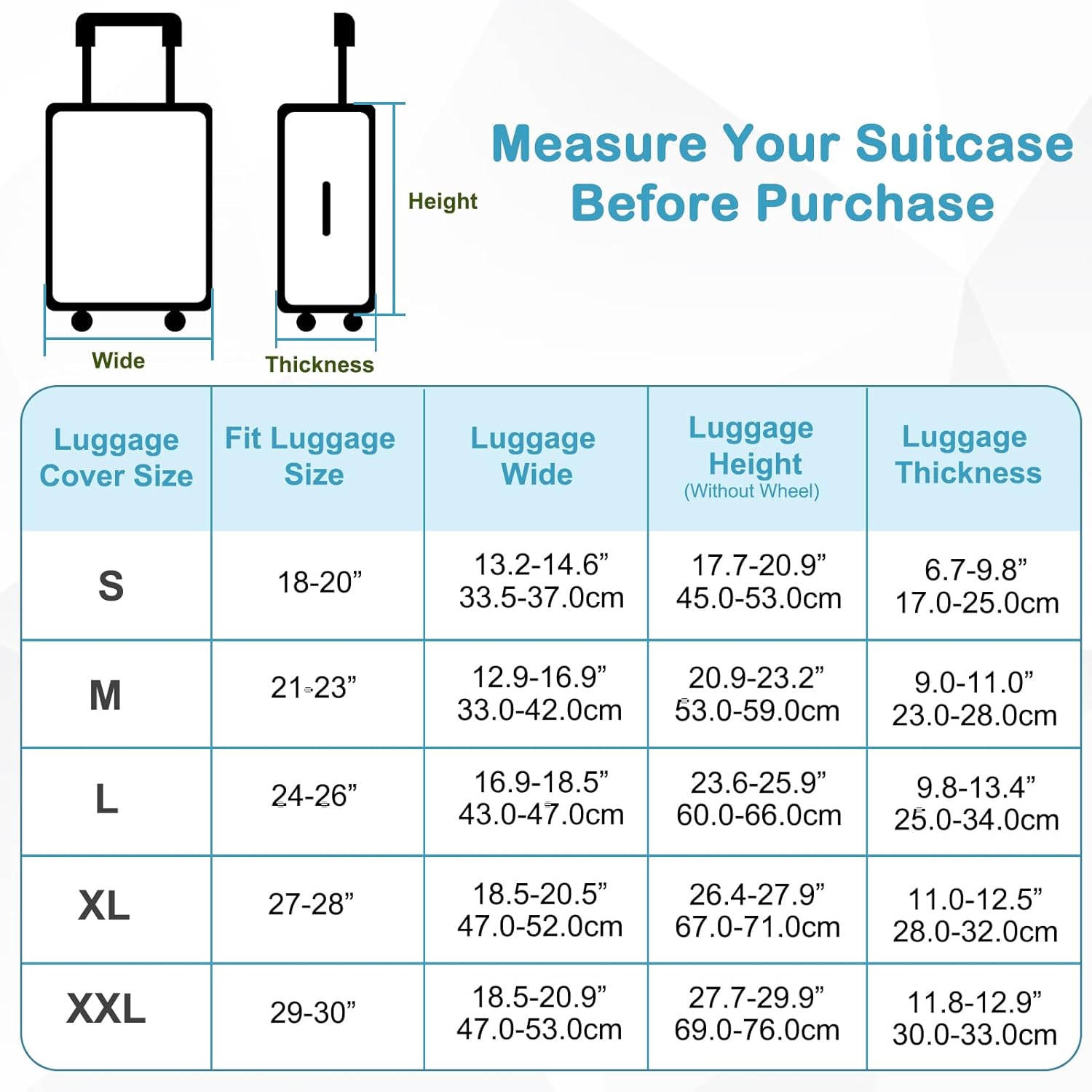 • Thick Fabric for Travel Protection: Travel can be rough on your luggage. Our reinforced thick fabric acts like invisible armor, shielding your suitcase from scratches, scrapes, and bumps—so it stays looking new trip after trip