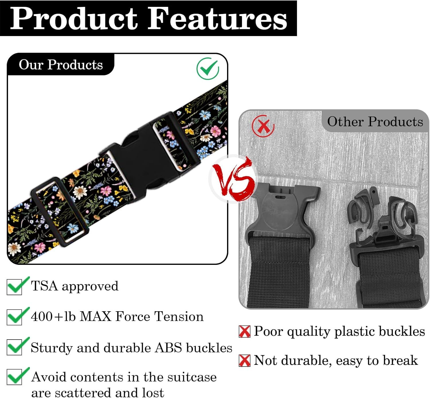 - 【Strong & Durable】 Made of high-quality nylon fabric, our luggage straps can withstand up to 400lbs of force, ensuring that they will not easily break and can be used repeatedly.