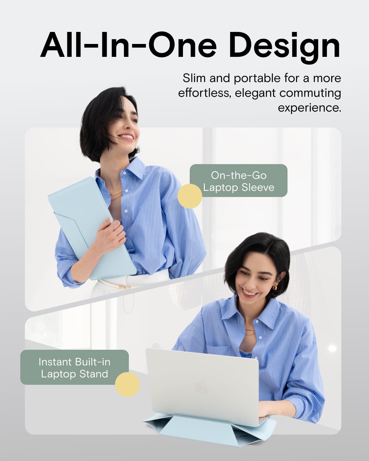 MOFT Laptop Carry Sleeve, 2-in-1 Laptop Bag & Stand for 14" MacBook Air/Pro & Dell/HP/Lenovo/Asus, Stylish Slim Computer Sleeve Bag with Expandable Storage for Computer Accessories, Soothing Mist