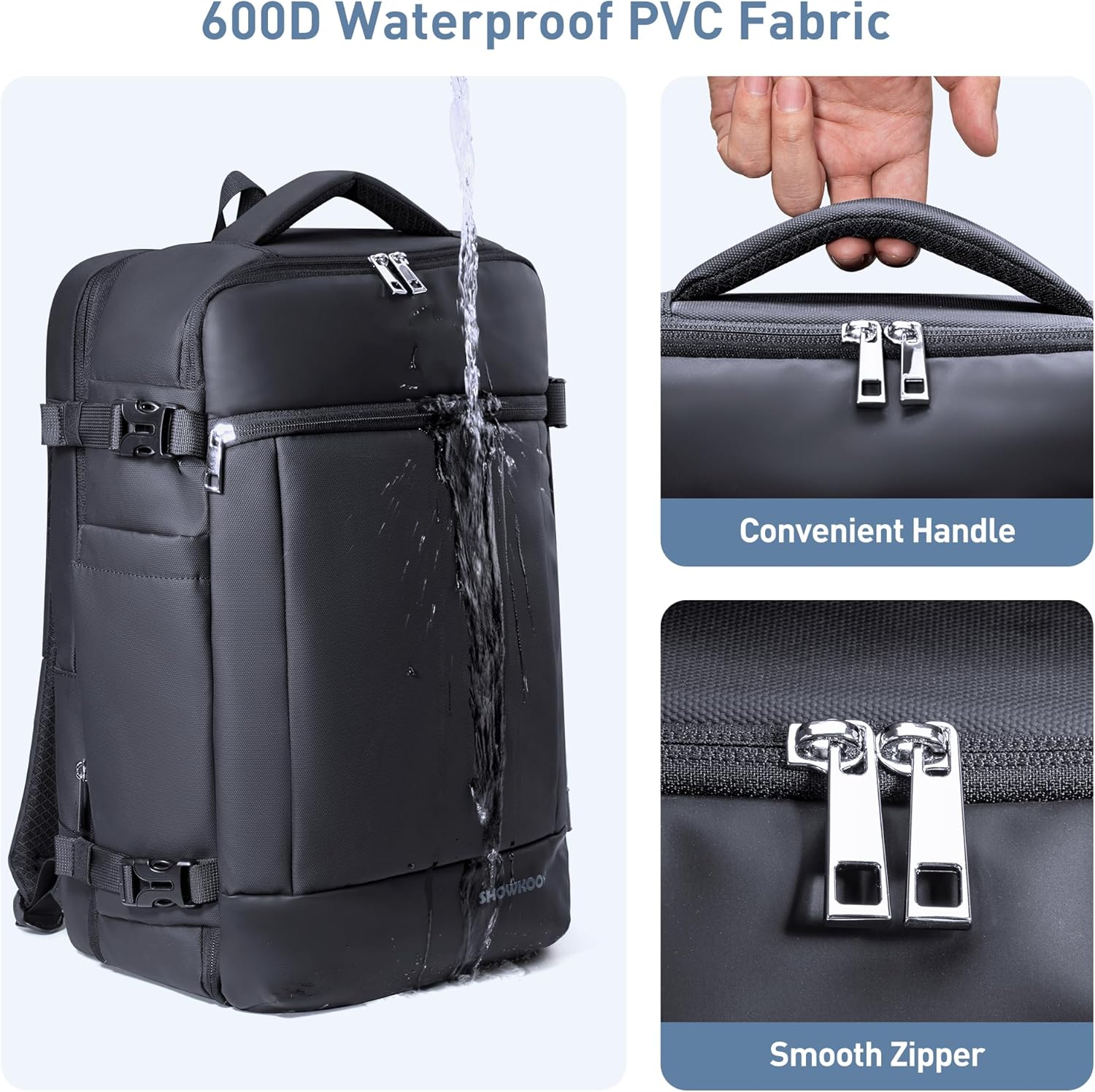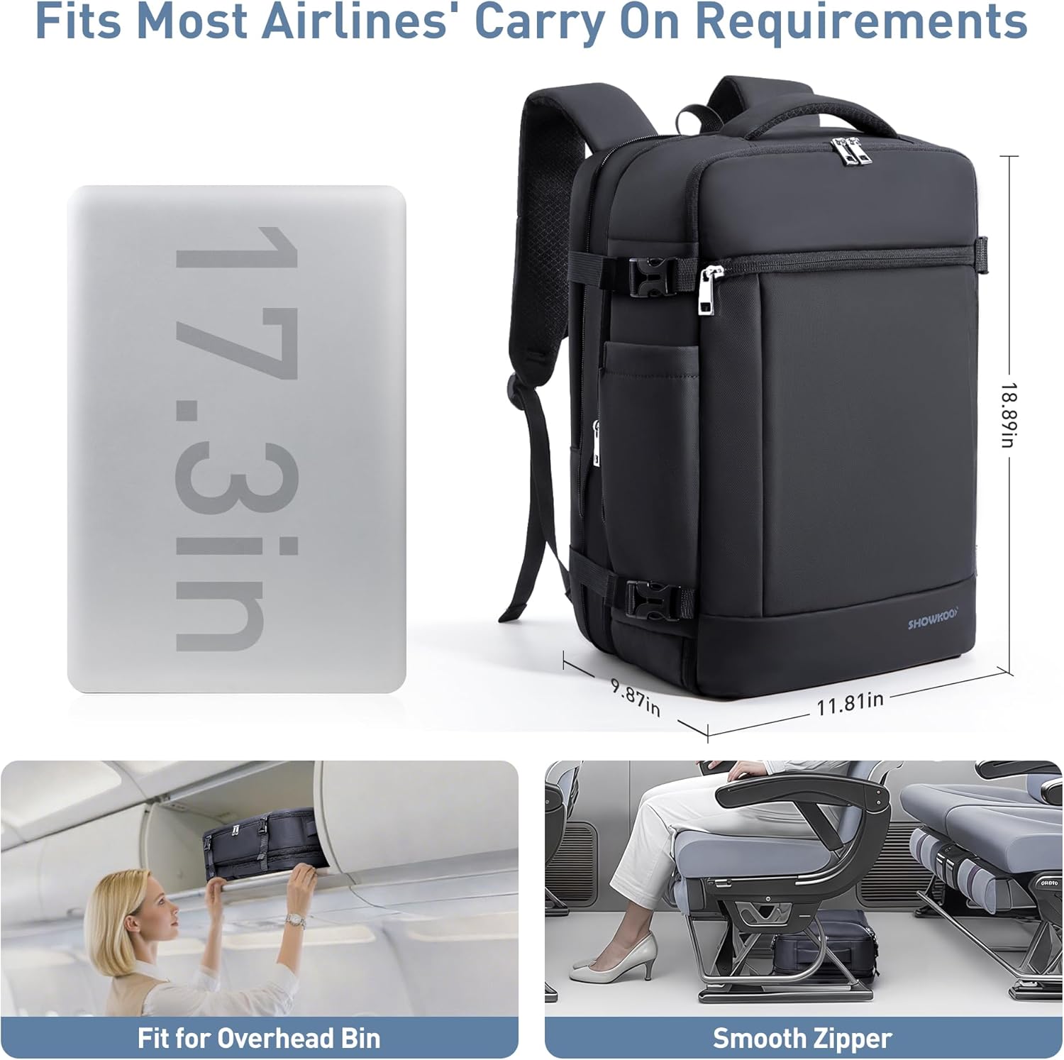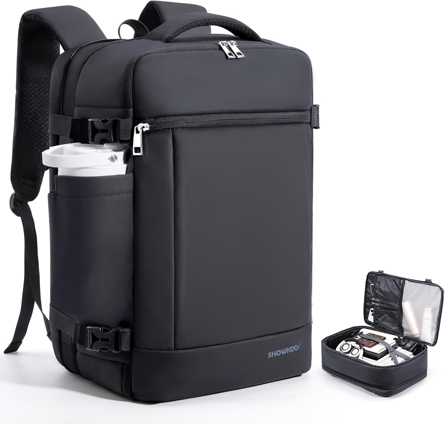 SHOWKOO Travel Backpack For Man Women, Airline Approved Carry On Laptop Backpack For Business, 40L Expandable Large Capacity Backpack, Black