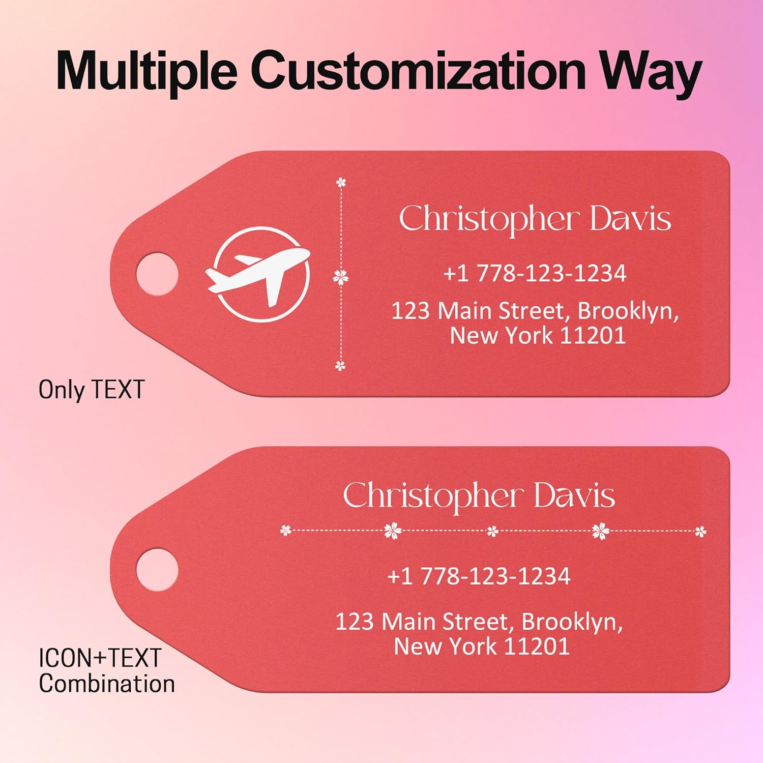 - ✔ Dual-Sided Laser Engraving: These engraved metal luggage tags offer crisp, fade-proof engraving on both sides. Personalize the front with your name or logo and the back with contact details for a polished, professional look that lasts trip after trip