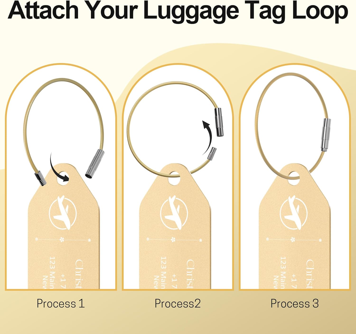 - ✔ Heavy-Duty Double-Layer Aluminum: These custom aluminum luggage tags feature reinforced alloy construction to withstand drops, moisture, and rough handling. Built for frequent travelers, this personalized luggage tag endures conveyors, checked baggage, and global adventures