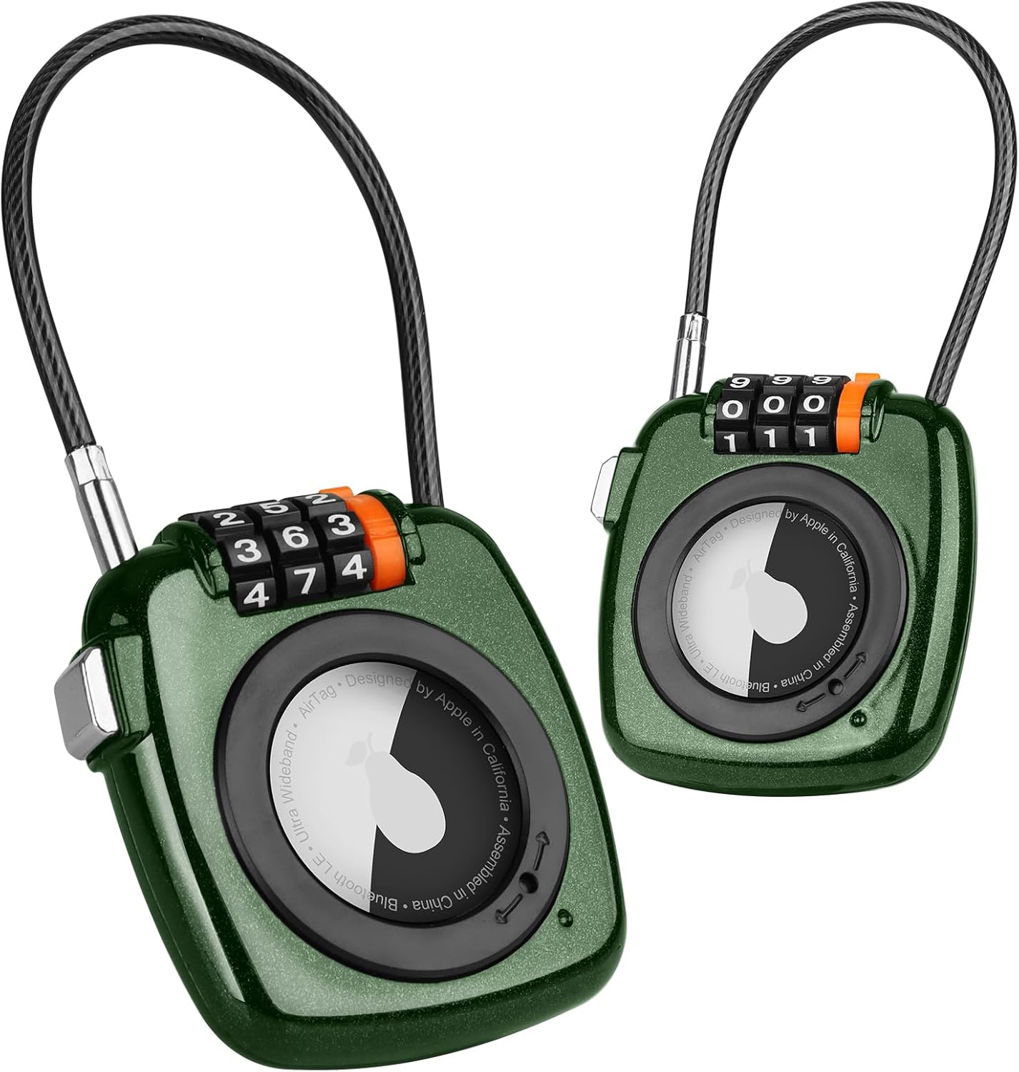 Compatible with Apple AirTag Secure Lock with Wire Cable, 3-Digit Combination Luggage Locks, Alloy Body Ultra Durable Anti-Lost Protective Case for Luggage, Bags, Suitcase, and Backpacks (GREEN)
