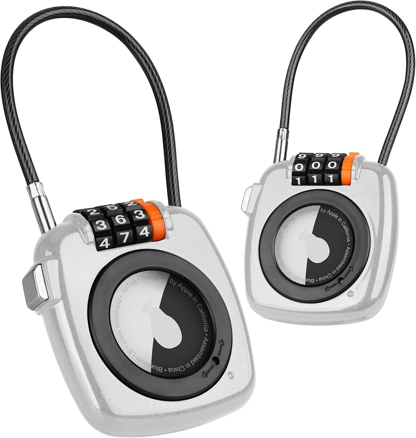 Compatible with Apple AirTag Secure Lock with Wire Cable, 3-Digit Combination Luggage Locks, Alloy Body Ultra Durable Anti-Lost Protective Case for Luggage, Bags, Suitcase, and Backpacks (WHITE)