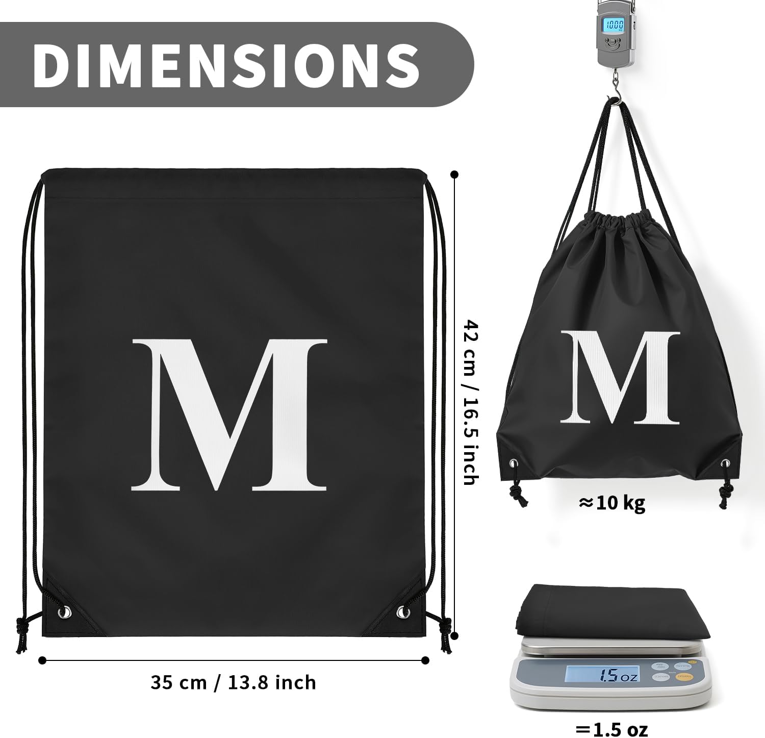 ZOMFELT 6Pcs Drawstring Backpack Drawstring Gym Bags, Foldable Draw String Backpack with Multiple Colors and Letters, Lightweight Polyester Cinch Bag for Gift, Beach, Sports, Travel, Swim (Letter M)