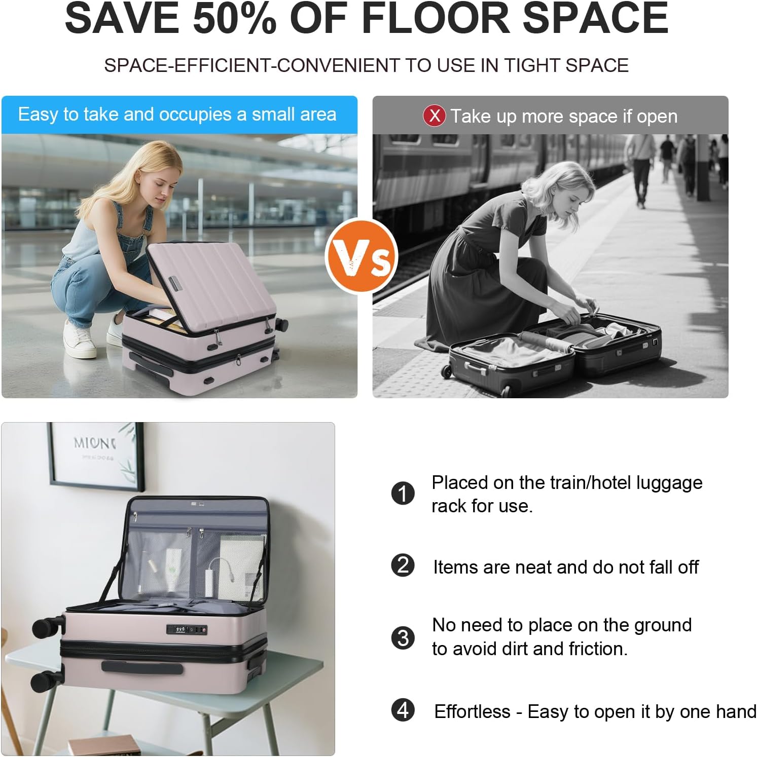 - 【CREATIVE TOP LOADING】Kroser Top Loading carry on luggage,Leading the future opening and closing method which is effortless to open or close the suitcase, not only is it easy to load, but it also saves space. This design solves the problem that traditional luggage separated 2 compartments of heavy load then it's difficult to open and close. Importantly, it also avoid the displacement of items.